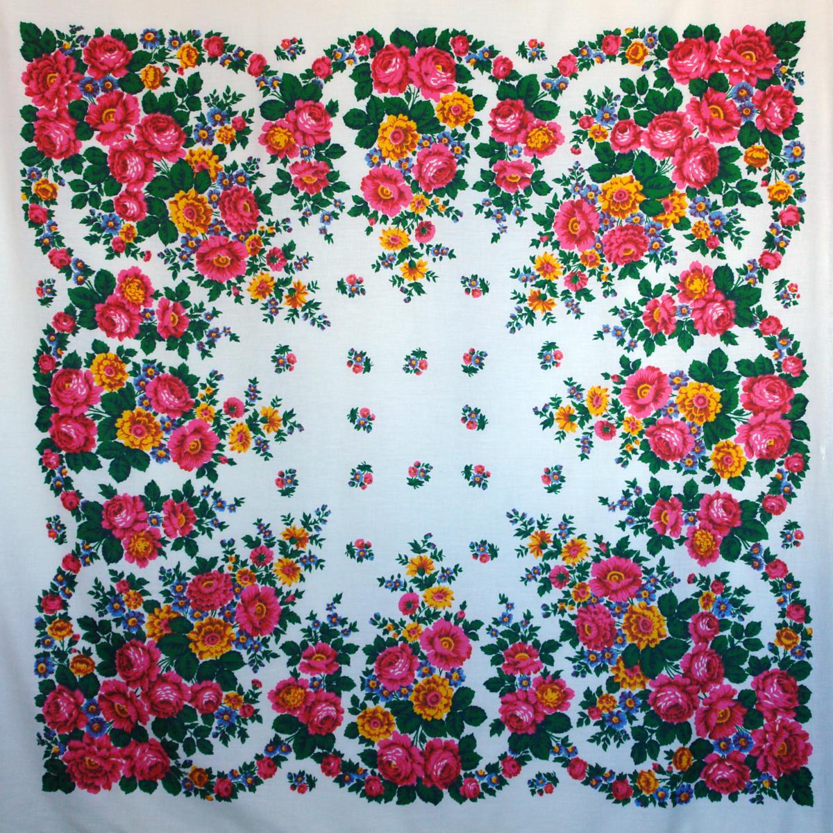 Ещё одна хлопковая шаль. С шиповником и гирляндами... И характер у неё совсем другой, и аромат.