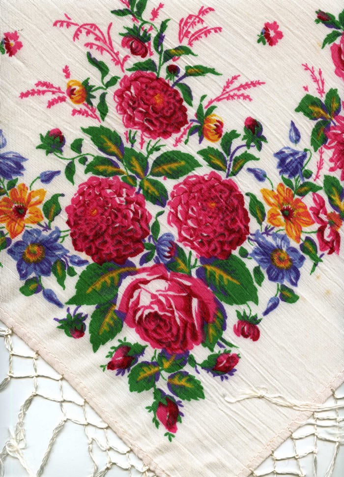 Интересный экземпляр. Но... вряд ли ему 100 лет. Возможно, шаль печаталась на Городковской фабрике в начале 50-х годов. Бахрома хорошо сохранилась. Я перенесу ваше сообщение в тему про старый посадский хлопок. Не возражаете?