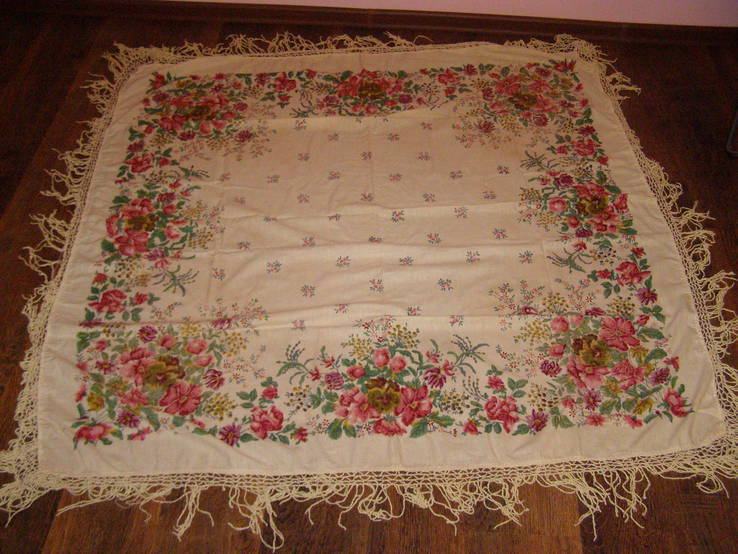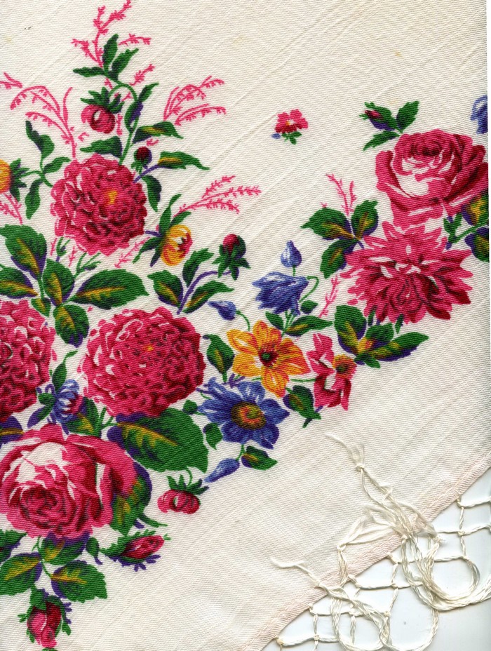 Интересный экземпляр. Но... вряд ли ему 100 лет. Возможно, шаль печаталась на Городковской фабрике в начале 50-х годов. Бахрома хорошо сохранилась. Я перенесу ваше сообщение в тему про старый посадский хлопок. Не возражаете?