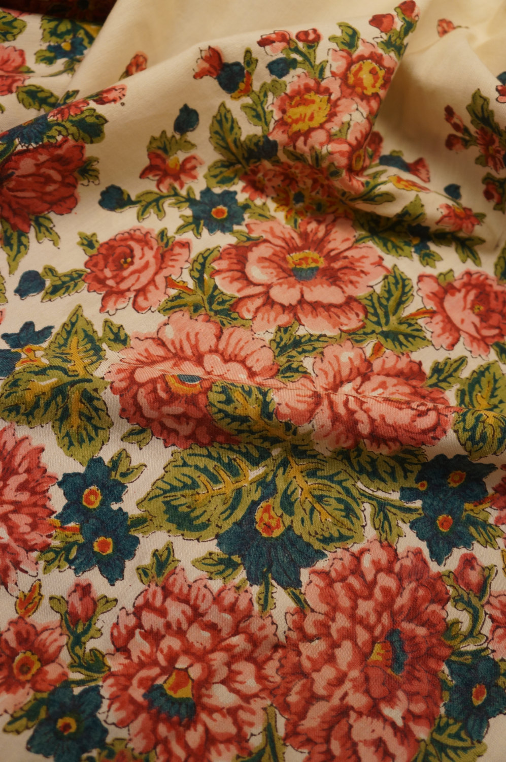 Интересный экземпляр. Но... вряд ли ему 100 лет. Возможно, шаль печаталась на Городковской фабрике в начале 50-х годов. Бахрома хорошо сохранилась. Я перенесу ваше сообщение в тему про старый посадский хлопок. Не возражаете?