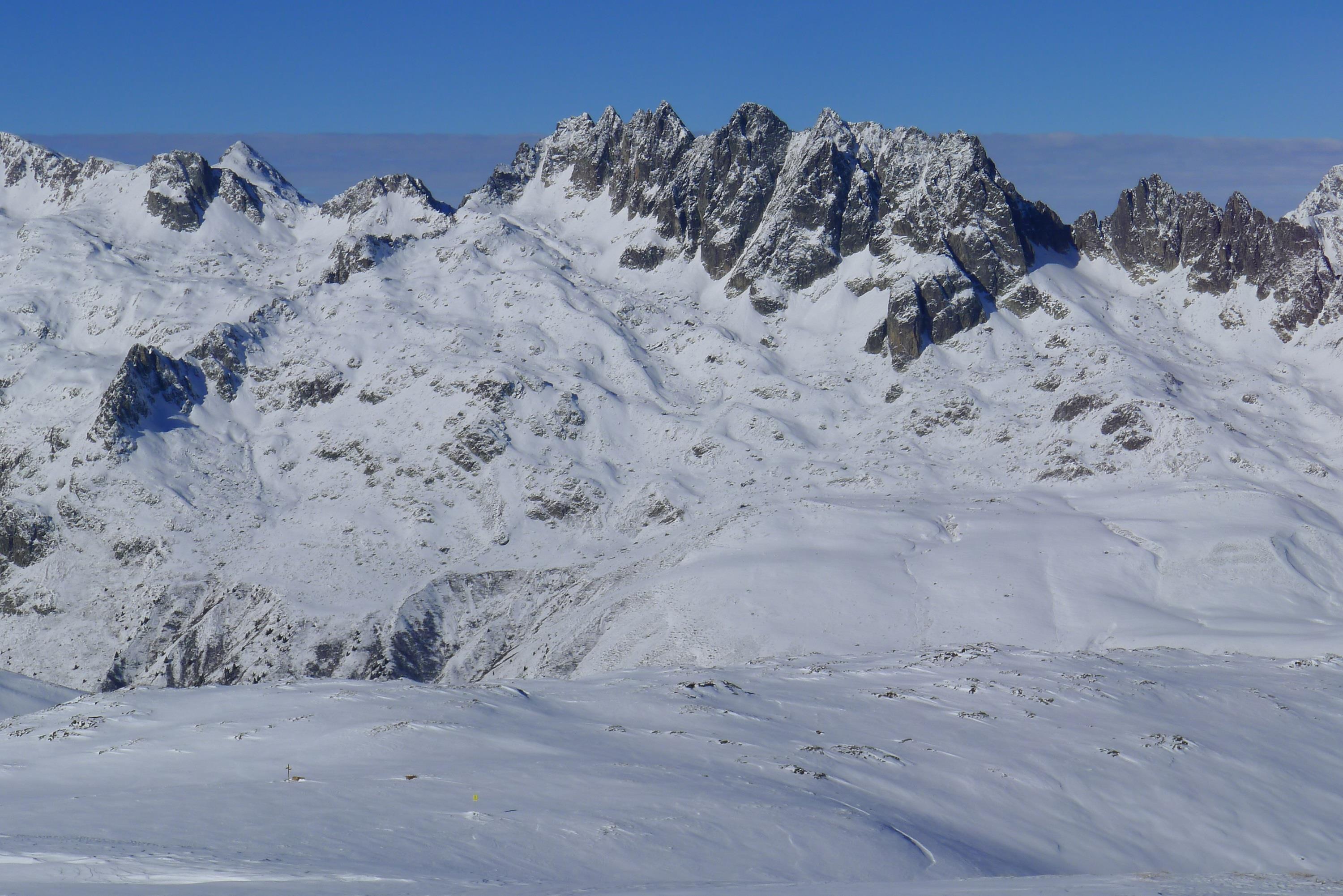Как на ладони известнейшие вершины массива Les Grandes Rousses, гребенка Aiguilles de l'Argentière.