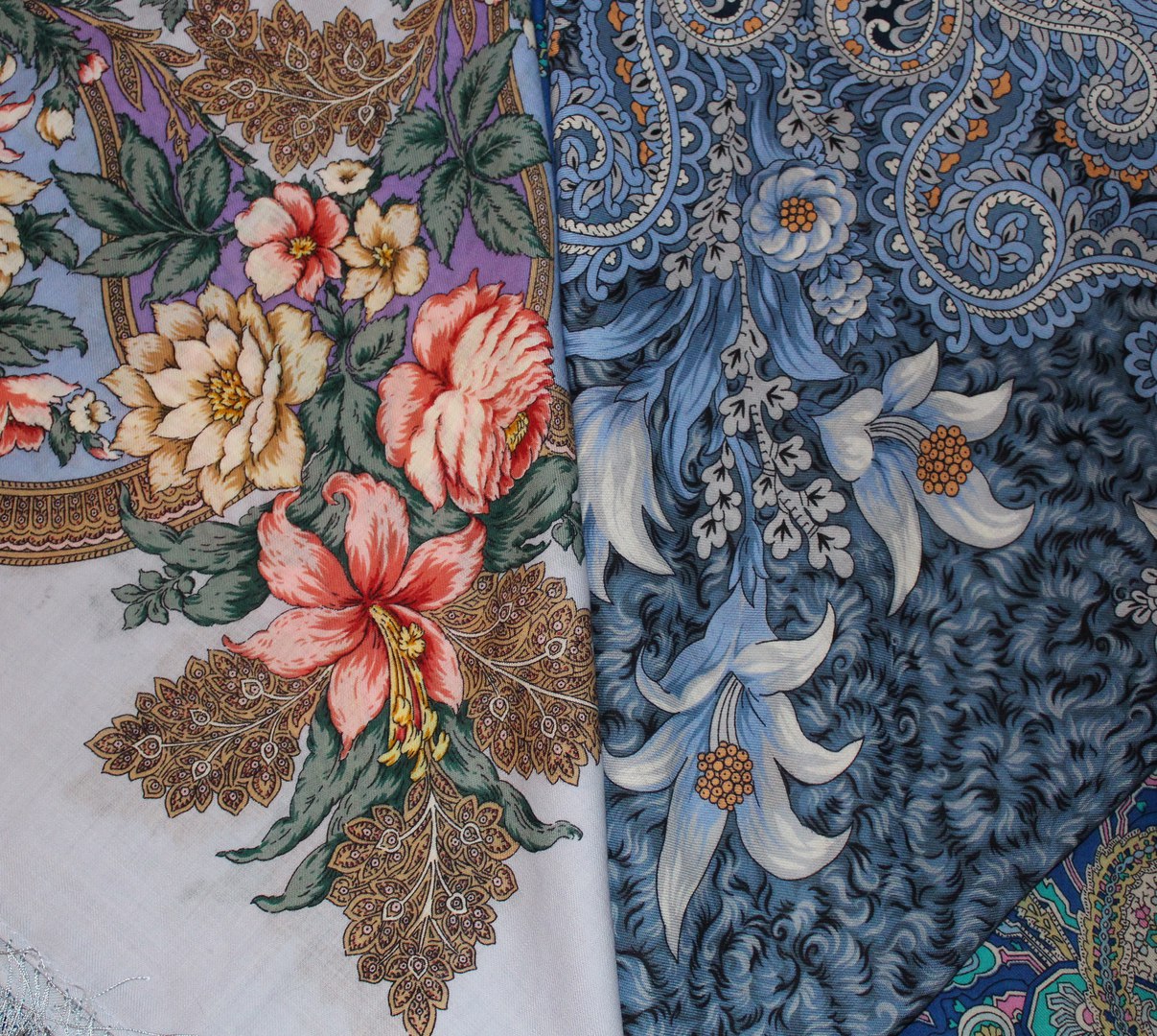 Сравнение "крупности" цветов на платках. Самое лучшее -это, конечно, личная примерка, но вдруг, кому то пригодится