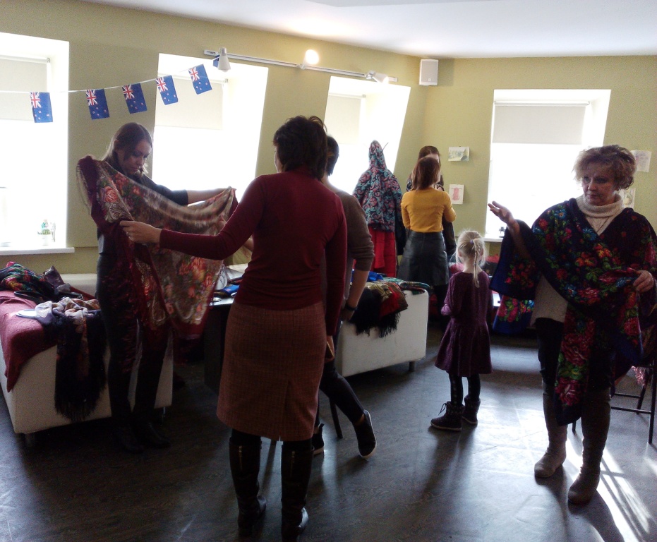 Пошли Елены. Гостью пропускаю вперед. Хочу сказать большое спасибо Лене, за то что она привезла много шалей и платочков старинок. Хоть посмотреть смогли.