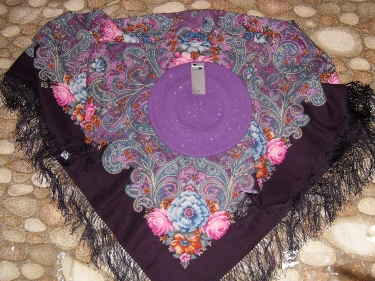 Виктория, красота! Очень красивый платочек- "Мечты о счастье" в этом колорите, тоже люблю его и часто ношу. С беретиком будет совсем замечательно!