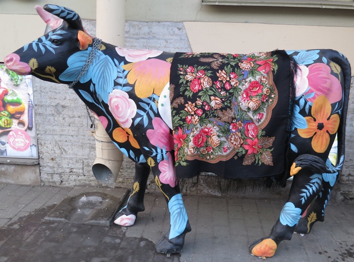 Даже на фоне пёстрой витрины выгодно выделяетесь. Цветы такие ясно-красные очень Вам идут.