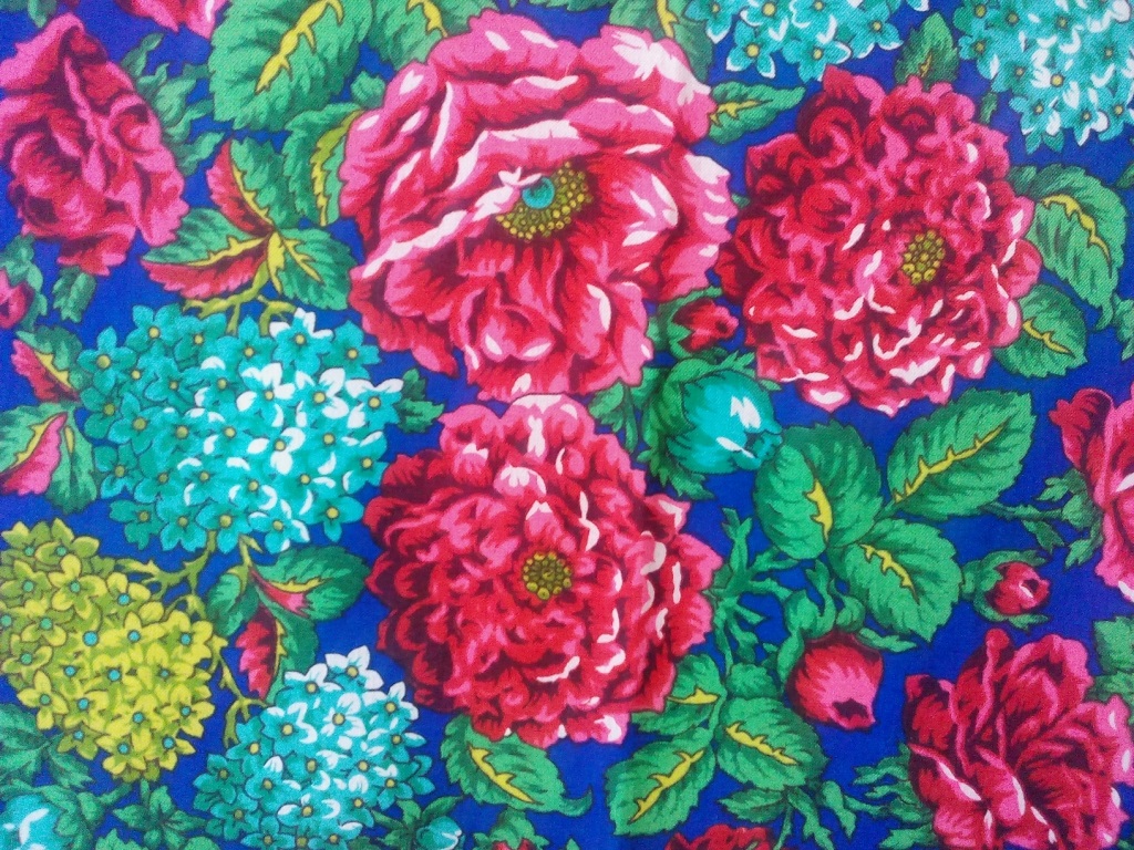 Синий цвет, просто обалденный, яркий, насыщенный, очень красивый. Розы и георгины родаминово-красные. А какие гортензии.... Второй день, буквально не отрывая смотрю на шаль.