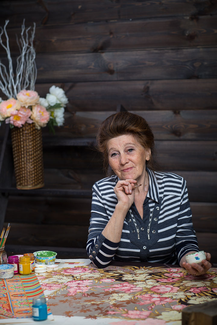 С 1962 года работает художником на Павловопосадской платочной мануфактуре.