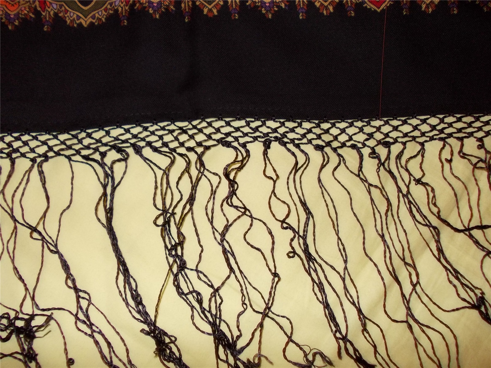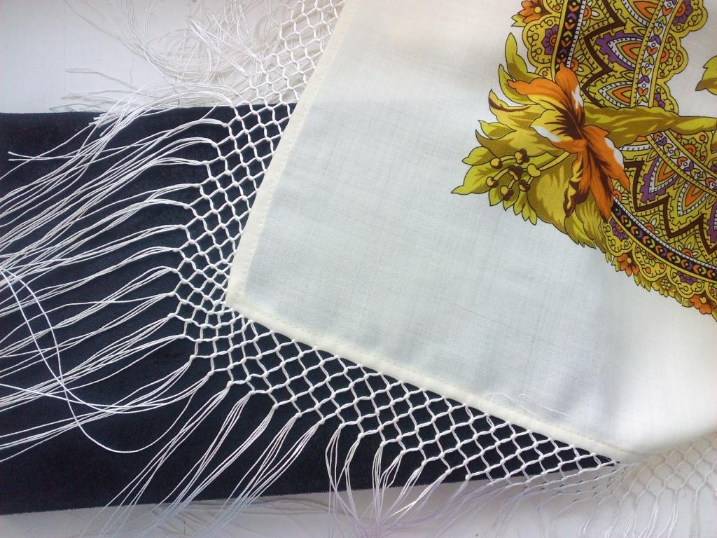 У меня есть шелковая шаль с красивой бахромой в три ряда клеток - смотрится гораздо красивее. Кажется, это Бакинское производство.