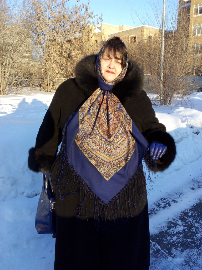 Заодно решила со стороны посмотреть, какие перчатки подходят лучше. Всё ж таки синие подходят больше, розовые яркие, для этой шали. Но зато как смотрится шаль, мне очень понравилось. Очень рада, что хватило ума не продавать ВУ 14.