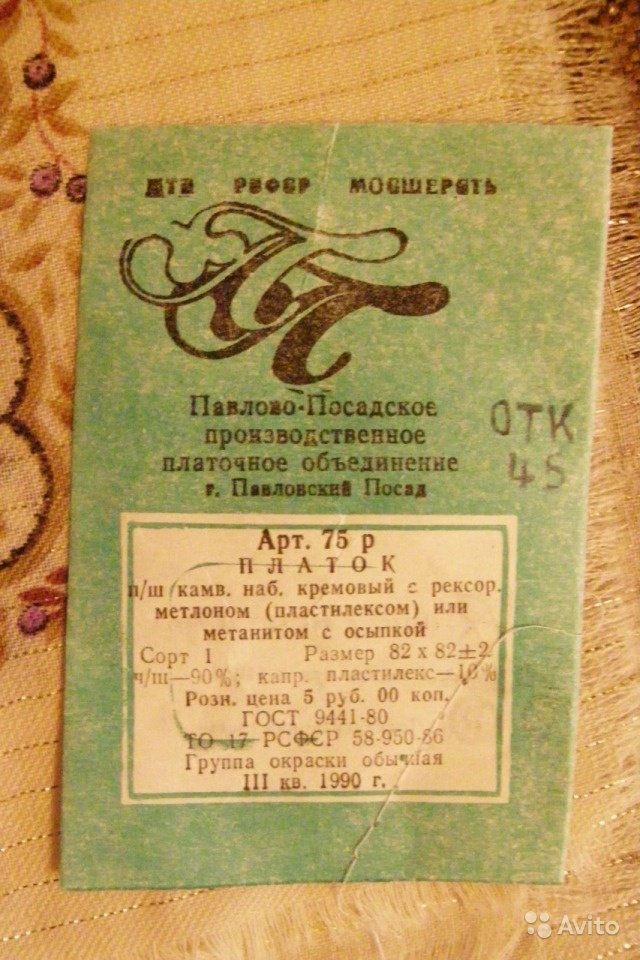 Платочек старинный 94х94 с историей и клеймом ППМ (!)