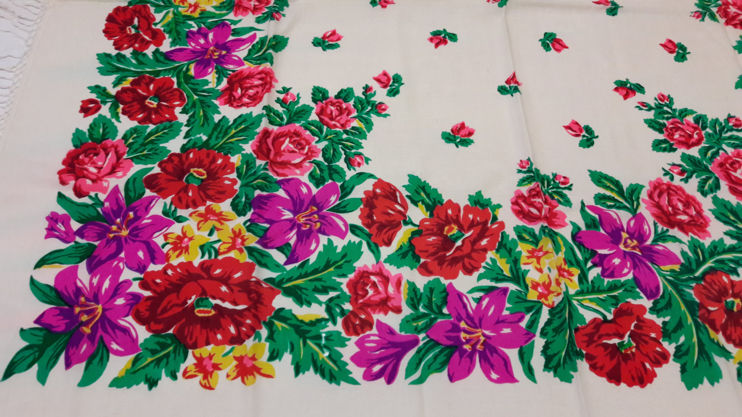 Анисья, эта шаль 148 Е.Регунова Букет с геранью 1976 г. вариант на хлопке.