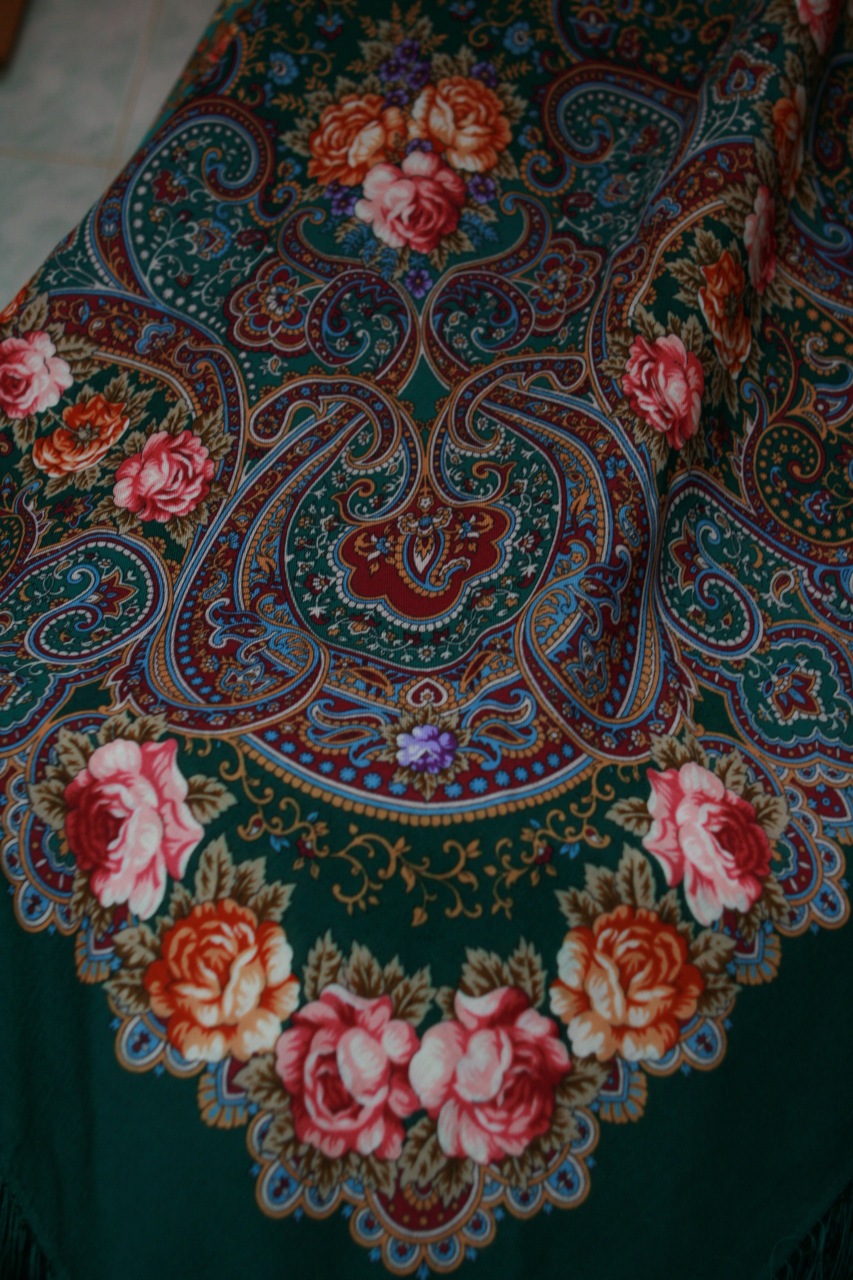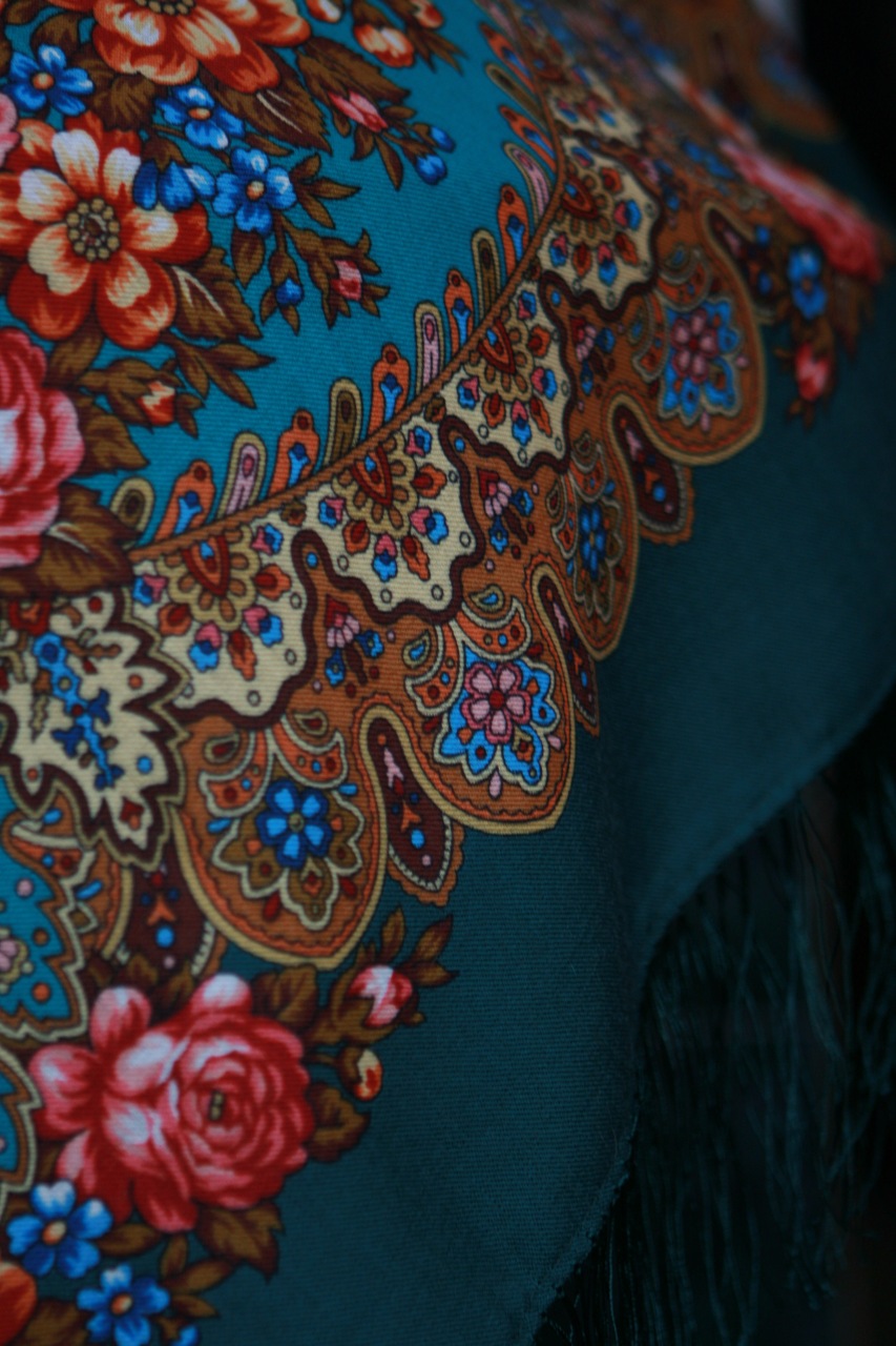 Но у меня вопрос - какого он цвета? На ваших фотографиях он голубой, синий, бирюзовый и такой колорит мне очень нравится! На фото из каталога - это зеленый платок очень редкого оттенка залени, красивый, но не мой. Так какого он цвета?!