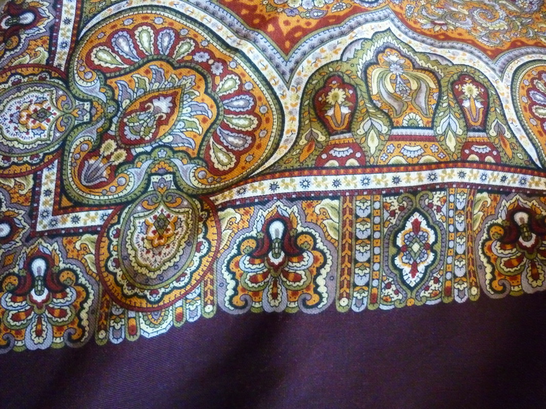 А я принесла показать маленький платочек Мария Дадоновой в бордовом колорите, очень полюбила его, такой он милый, гляжу на эти персиковые и сиренево-голубые цветы, и тепло на душе становится...ткань у него тонкая, лёгкая и мягкая, и подошёл он мне очень легко ко всем моим одёжкам :) На первой фотографии без прямого света цвета передались точнее.