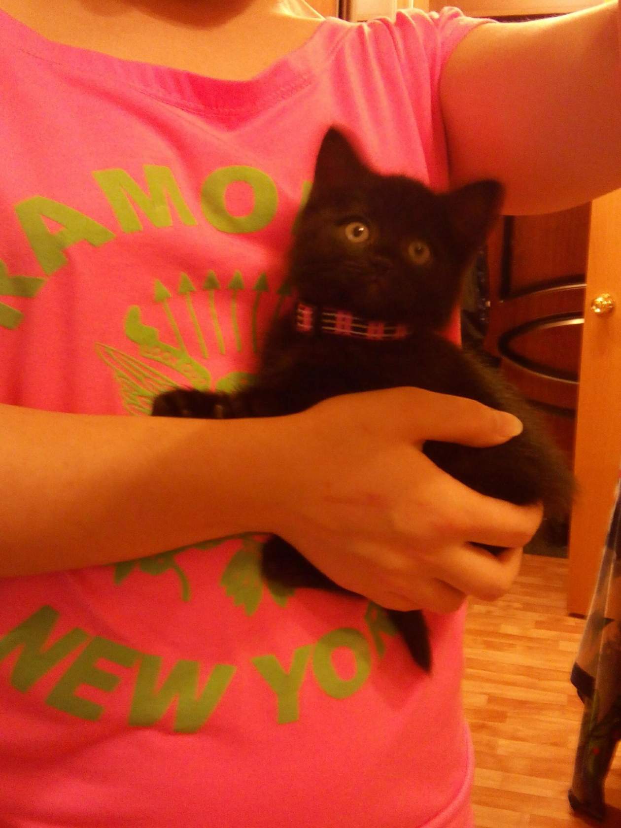 3 хвостик. Кошечка Машенька. Была подобрана в стоге сена в конце октября прошлого года, говорят она там мяукала 3 дня. Неделю шли дожди... и как раз в эту ночь передавали сильные заморозки. мы взяли этот маленький мокрый черненький комочек. Она была совсем крошечной, не умела кушать. была истощена. Мяукать уже не могла. Муж согласился взять ее так как оставить ее там означало убить. Так как пить она не могла я набрала молока в шприц, после первого миллилитра у нее так сильно забурчало в животике. Котеночек не отходил от меня ни на шаг, ее назвали моим хвостиком, даже когда я мыла посуду она вкарабкивалась на меня по одежде и даже 1 раз упала в мыльную воду. На лоток стала ходить раньше чем лакать из миски. Через какое то время я стала замечать у нее гнойные сопельки возле носа и хрипы в легких, мяукать она еще не могла, голоса не было. Понесла к ветеринару, сказали что у нее сильной воспаление легких. и назначили очень много уколов и прочих лекарств, котенку поставили возраст около 4х недель. Я тогда была в отпуске и носила ее каждый день на уколы, судя по ее поведению они были ужасно болючие, так как этот комочек даже рычал. Спала она у меня на плече. Мои кошки ее конечно очень долго не принимали, шипели, рычали, особенно Ксюша, хотя сейчас даже вылизывает ее. она наверно месяцев до 8 спала у меня на голове, а потом нам стало не хватать места на одной подушке и она стала спать между нашими с мужем подушками. изначально мы ее планировали отдать в добрые руки, но я так к ней привязалась, что на звонки отвечала, что котенок уже пристроен. Голос у Маши появился, но немного скриповатый, так смешно когда она со мной разговаривает. Мужу всегда кажется что она говорит мне "мама". Конечно кошечка покастная и егозистая но я ее очень люблю, как доченька она у меня