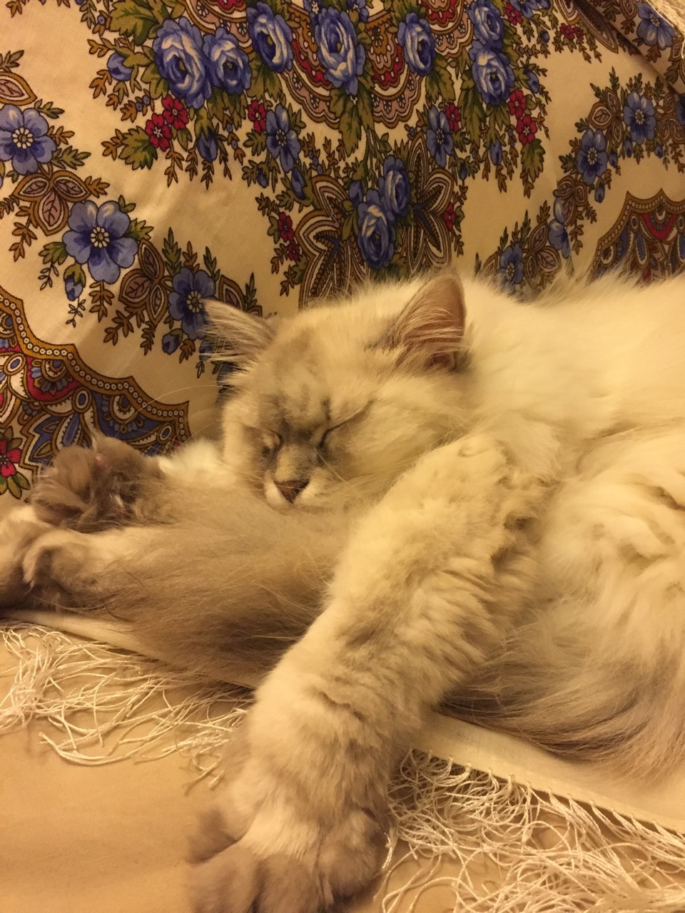 Harita, какая хорошенькая Мося! Если она возлегает на постели, значит, ей у Вас хорошо, и она вас приняла в свое сердце. Я так рада! Спасибо за Ваш поступок! ^%