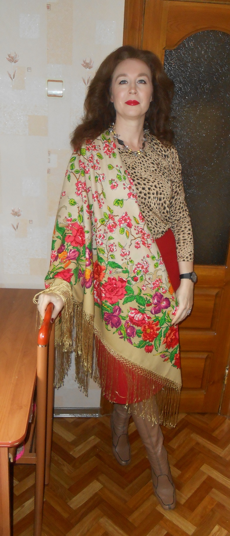 Надия, очень красивый образ ^% Особенно понравился портрет где виден светлый мех, такой нежный переход замша-мех-шаль. Шаль, конечно, исключительной красоты -нежная и яркая одновременно.