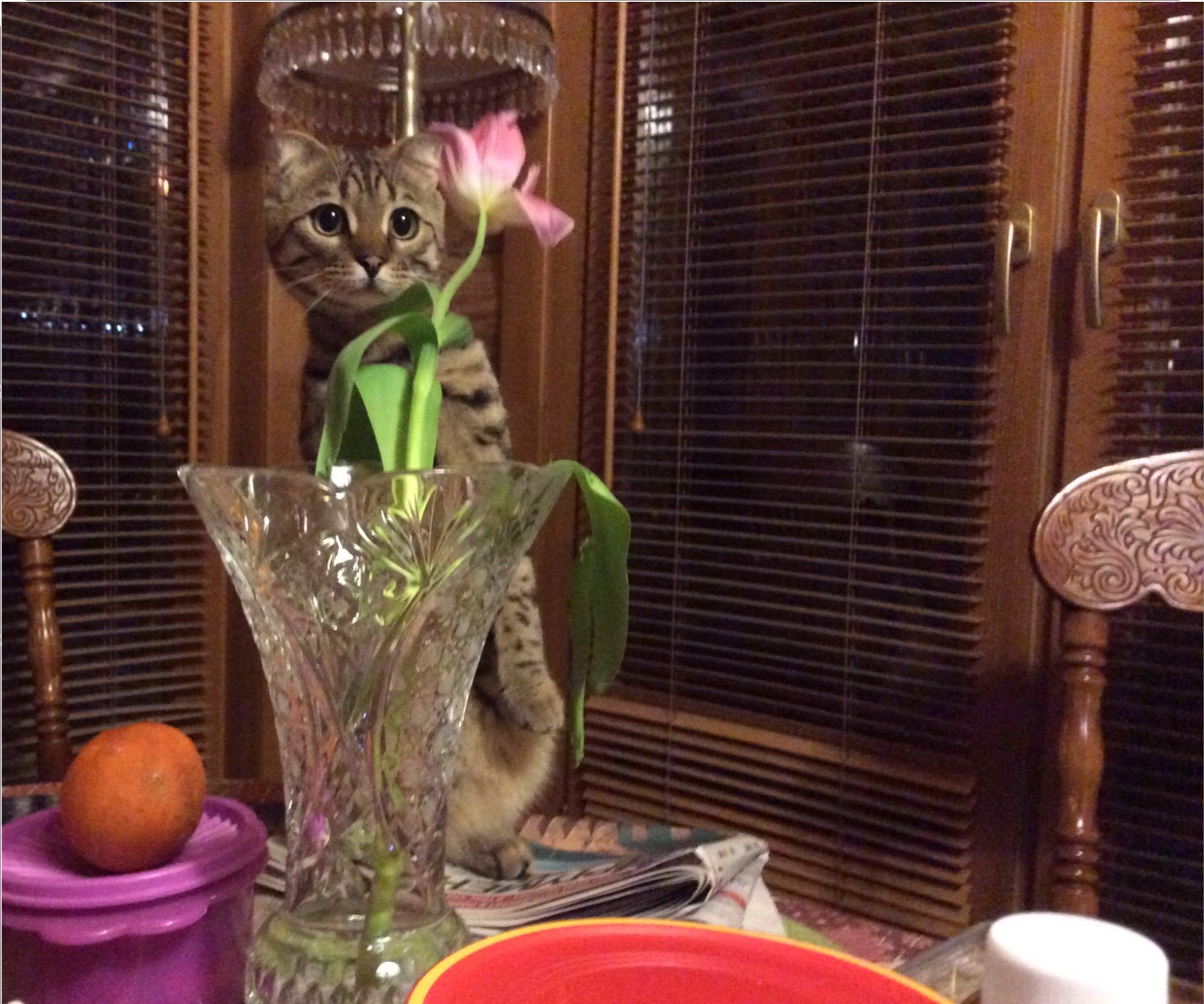У Савушки другая задача - дожевать последний тюльпан.