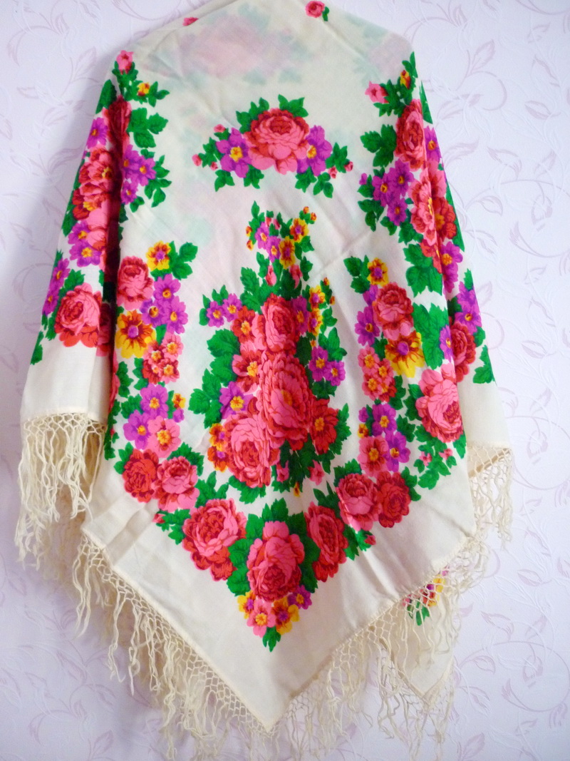 И так же для архива прекрасная шаль на старой шерсти, новенькая, без изъянов "Русская красавица". Художник - Ирина Дадонова