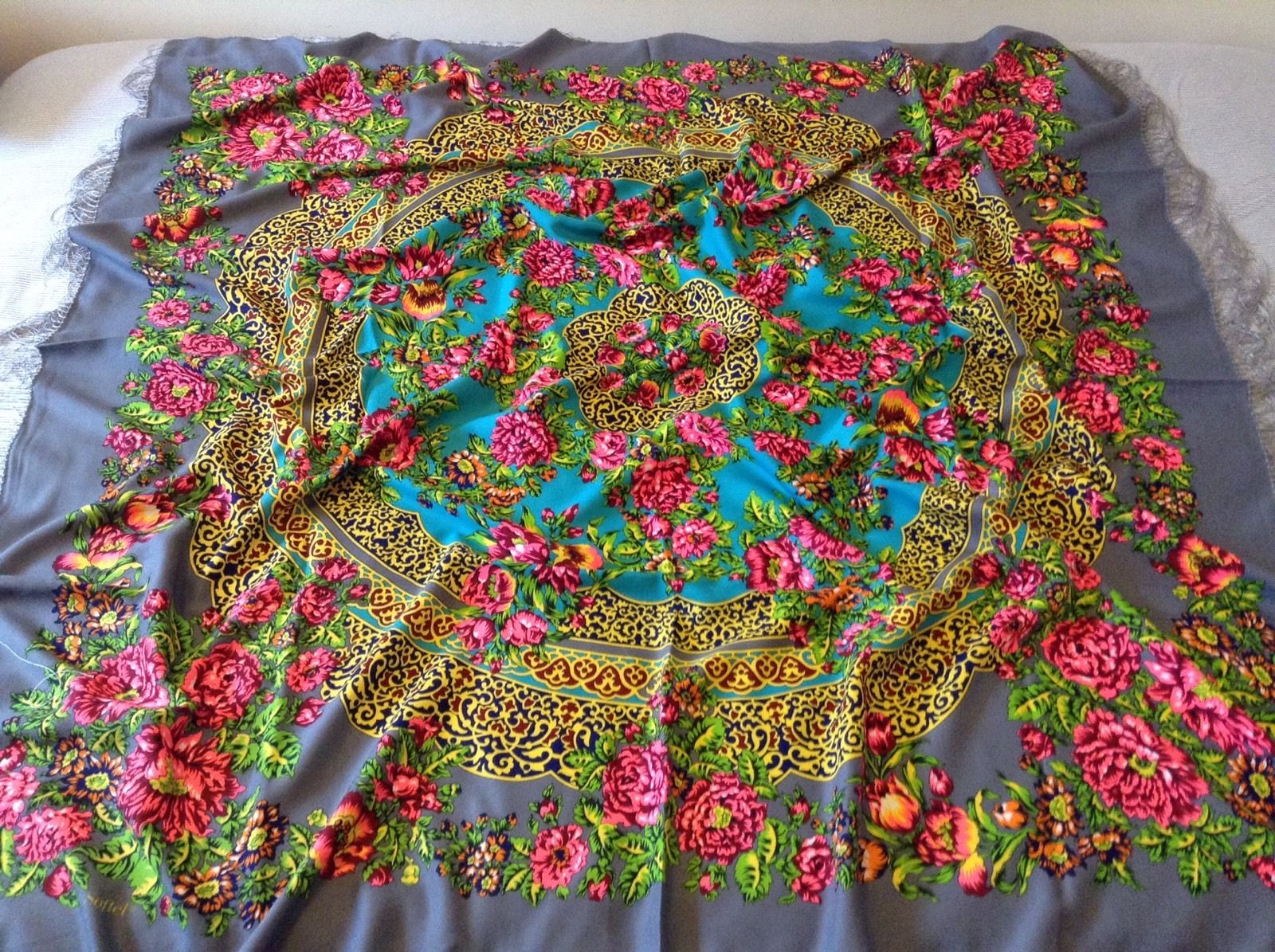 Видела этот плат в продаже на ибее, считаю, что - фейк. Там и размер был указан кажется не шальный... там у продавца Медальоны голубые из этой же серии непонятных колоритов ещё были. Качество печати неплохое, судя по фотографии, а вот с колоритами - беда...Танкервумэн писал(а):Дорогие шалелюбушки ,помогите опознать колорит Русского узора( Чеканки)