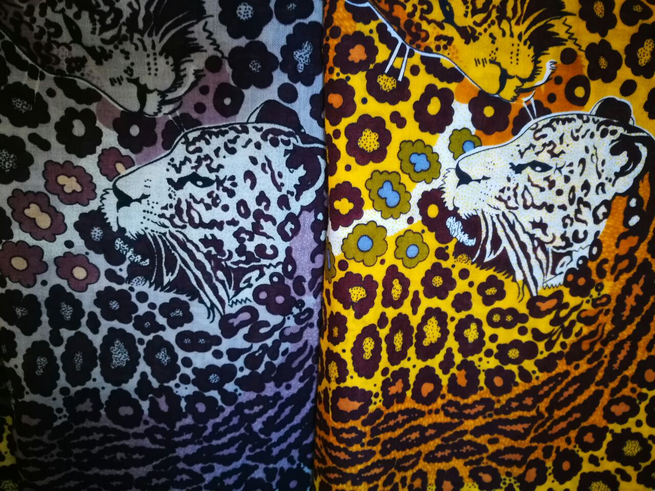 На верхнем снимке желтые леопарды старый выпуск с бахромой в три ряда клетками, на нижнем снимке желтые леопарды последних выпусков, бахрома простая шерстяная, пятнышки в рисунке отличаются.