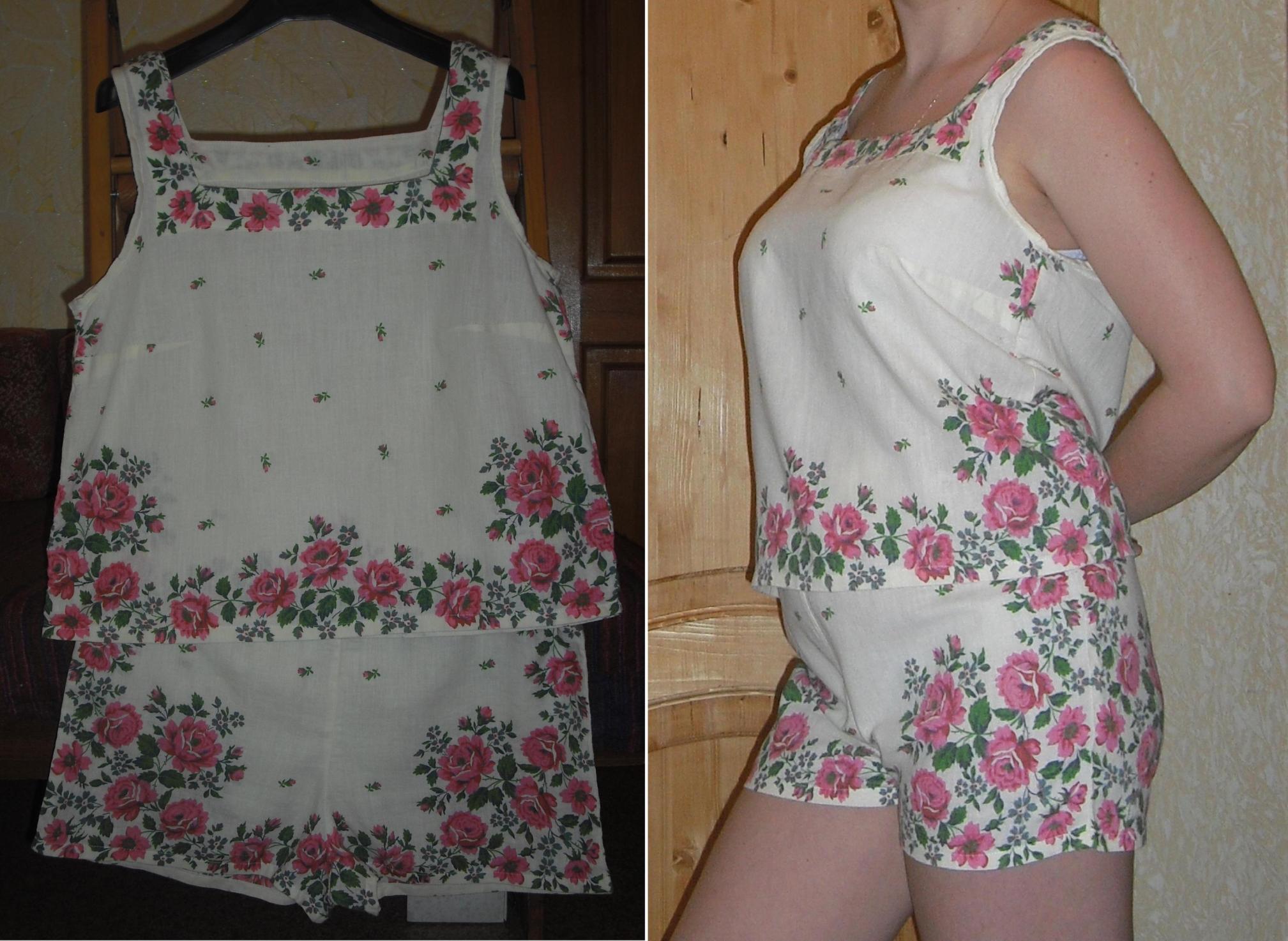 Здравствуйте! я тут новенькая. наткнулась случайно на ваш форум. и навеял он мне воспоминания о моей юности. Так однажды в классе 8 или 9 сшила я себе из найденных дома хлопчатобумажных (70х70) платков пижаму. Да так заностальгировала по ней, что решила повторить сей поступок. Благо на сей раз в бабушкином сундуке нашлись эти самые платки, только уже другой расцветочки.