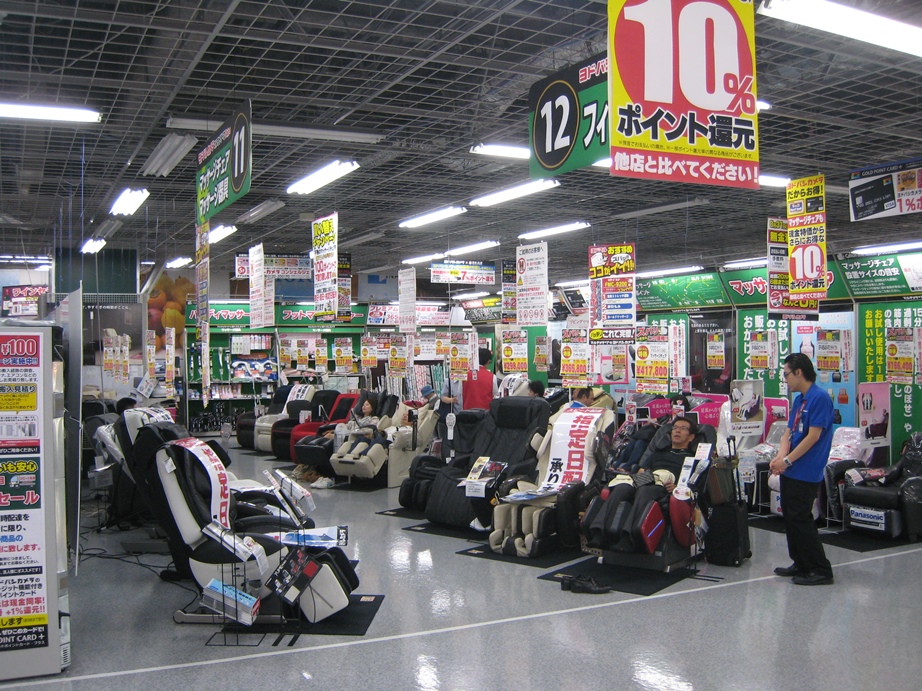 А в центре магазина - зал с массажными креслами, причем массируемый народ громко стонет от удовольствия, не стесняются.