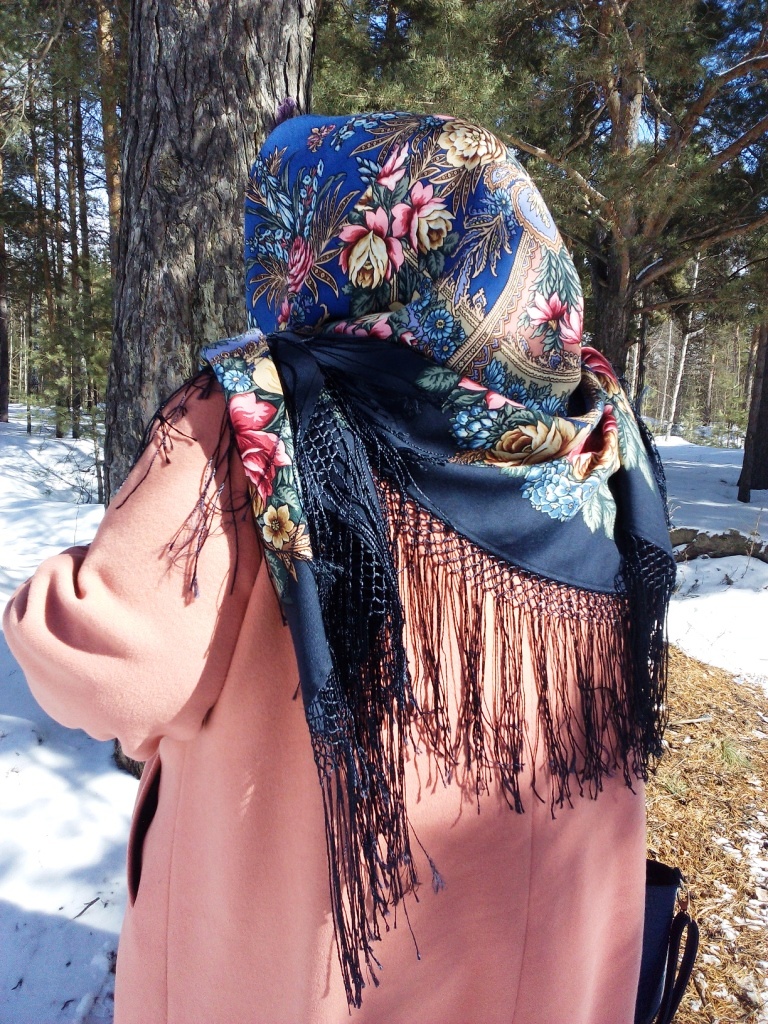 Без шали на голове, еще очень холодно. Всего то 5 минут была без шали, а уХи замерзли, поэтому намотала Счастливицу по самые уши :lol: теплоо, хорошо ..