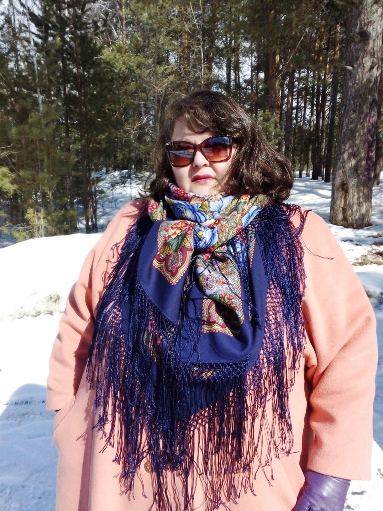 Лена, очень интересные сочетания с синими шалями. Какой цвет пальто оказался универсальный, даже удивительно, все шали к нему подходят :D