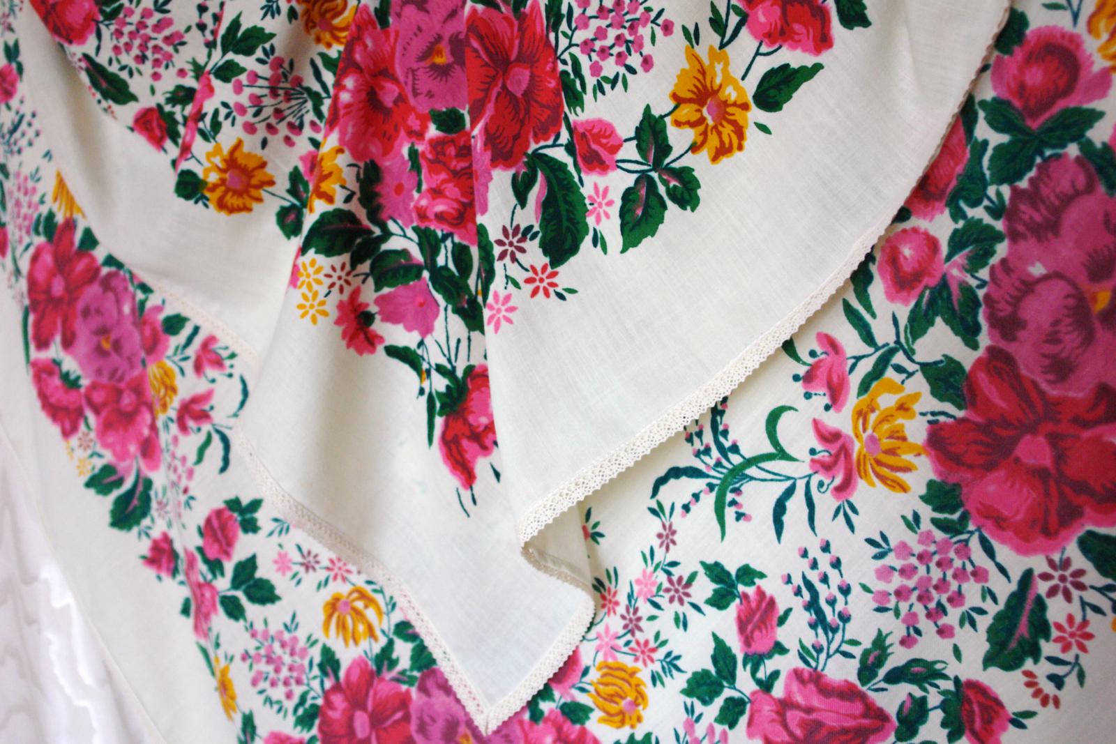 Есть у меня тот самый павловопосадский хлопок (как хорошо, что не выбросила и не отдала никому! А ведь были такие кощунственные мысли, когда я заразилась шалеманией, пока не узнала здесь, что моя летняя шалька - это тоже ПП). Когда-то сдуру я постирала её в стиральной машине, причём даже ещё не барабанного типа. Ну можно представить, что сталось с бахромой (кстати, краски на шали не поплыли - правда, я стирала в прохладной воде и с мылом). Кое-как я её, мокрую, расчесала, но в одном месте она прямо тесёмкой такой оторвалась. Да и вообще вся уже не имет зрака. Кисточки, что ли, навязать вместо растрёпанной бахромы? Или вообще оставить шаль с подшитым краем, как "Восточное путешествие"? Или надвязать какими-нибудь кружевами (подшить псевдовологодскими, благо их сейчас полно)?