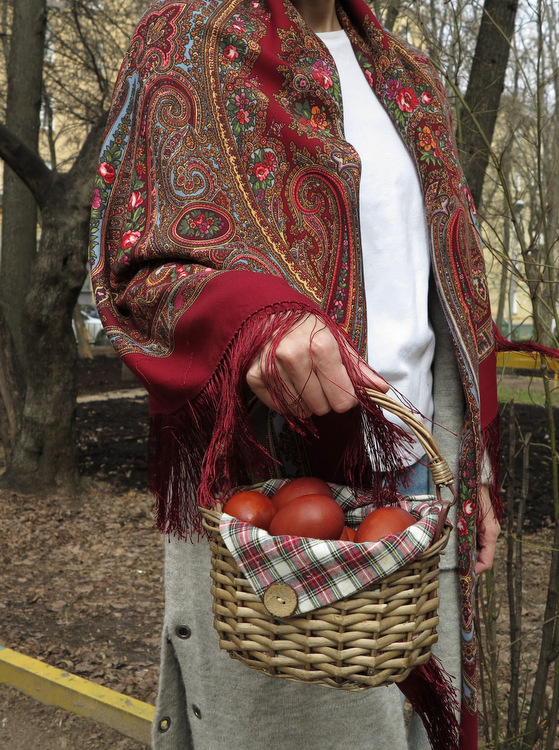 самые пасхальные платочки надели! Пасха-то красная! Замечательно, нарядно, радостно, прекрасно! Жаль только, что все великолепные цветы Утра румяного ушли в скрутку. Но ничего, так тоже красиво! Вам очень идёт красный цвет!