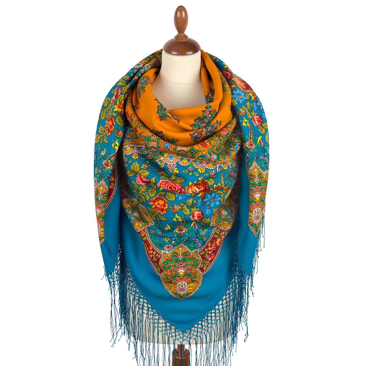 argon писал(а): Шаль 150х150. Шерсть. Информация об этой шали публиковалась во множестве источников, в частности, – в обоих альбомах Толстухиной и Полосиновой, в кн. Баровского, Макаровской, Рудина. Считается, что это – рисунок 1950-х годов, лишь Рудин указывает 1940-й. До 1960-х годов набивалась вручную. Известны (мне и на момент написания) 4 колорита: красный с бордовыми медальонами, оранжевый с желтыми медальонами, бирюзовый и зеленый.