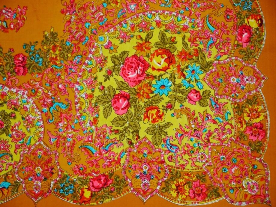 argon писал(а): Шаль 150х150. Шерсть. Информация об этой шали публиковалась во множестве источников, в частности, – в обоих альбомах Толстухиной и Полосиновой, в кн. Баровского, Макаровской, Рудина. Считается, что это – рисунок 1950-х годов, лишь Рудин указывает 1940-й. До 1960-х годов набивалась вручную. Известны (мне и на момент написания) 4 колорита: красный с бордовыми медальонами, оранжевый с желтыми медальонами, бирюзовый и зеленый.