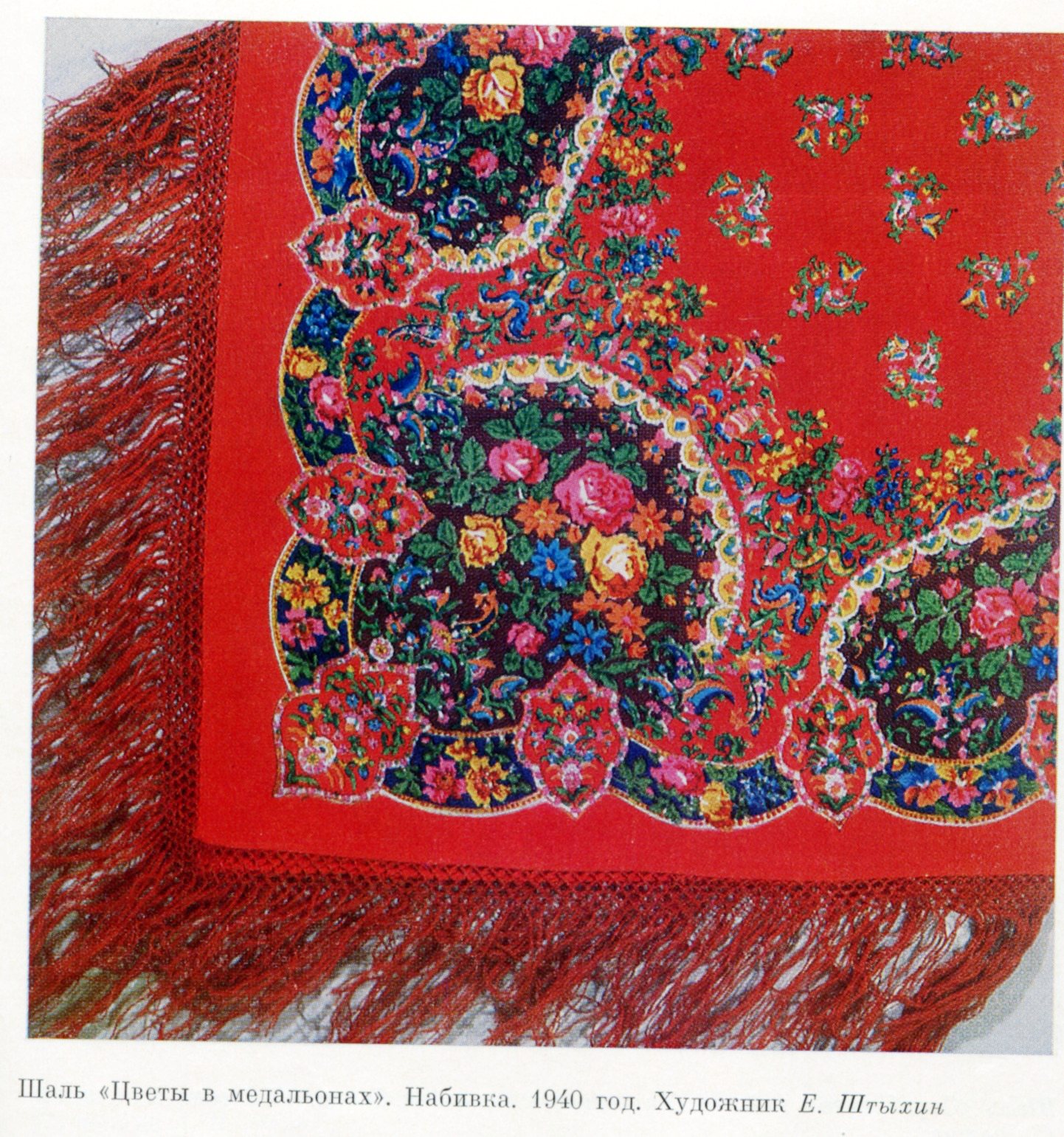 Фрагмент Шаль МЕДАЛЬОНЫ (Цветы в медальонах)- 1960 год по рис. 1950-х годов (или 1940-х?)