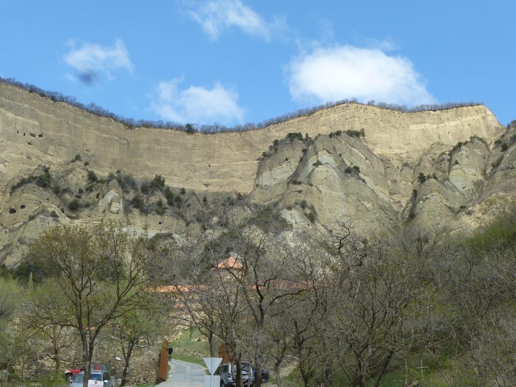 Всего 45минут на такси, и вы попадаете в Шио-Мгвимский монастырь - старинный монастырь в 9 километрах от города Мцхета по тупиковой дороге. Основан где-то после 560 года святым Шио, одним из ассирийских отцов, известным как Шио Мгвимский . Вскоре у него появились последователи, которые вырыли себе пещеры в песчанниковом обрыве. Эти пещеры можно видеть по сей день, хотя датировать их сложно.
