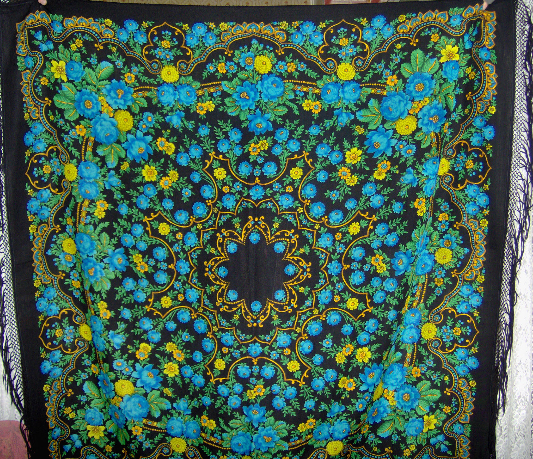 Шаль 150х150, 146х146 с популярным орнаментально-цветочным узором с "луковками"