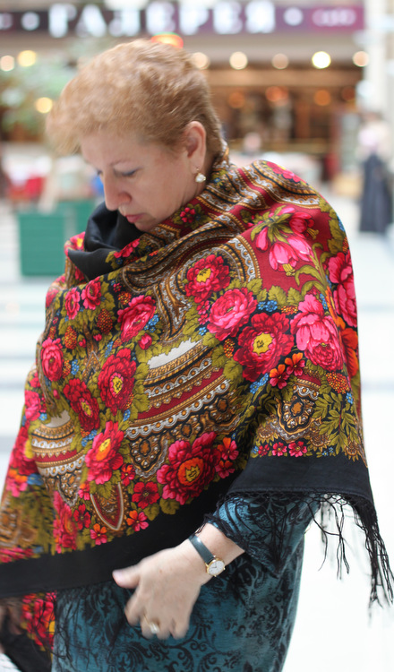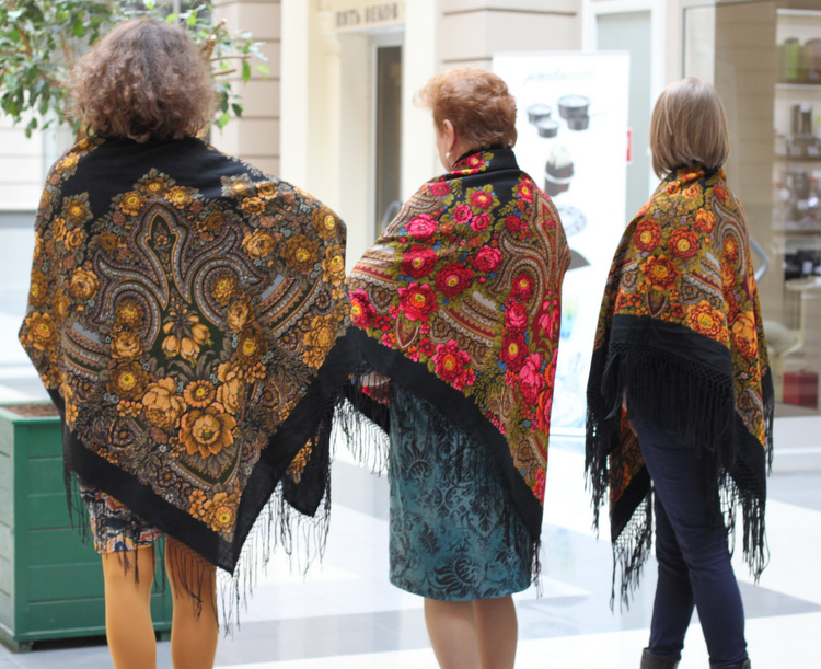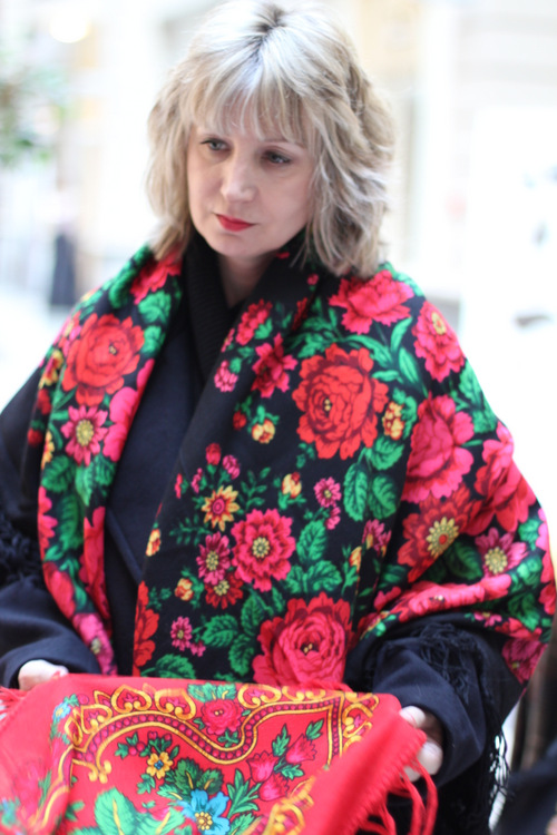 Торжок пользовался успехом. Мне тоже больше всего понравилась именно этот платок. Мне подошел бордовый колорит. Смотрится чрезвычайно современно.