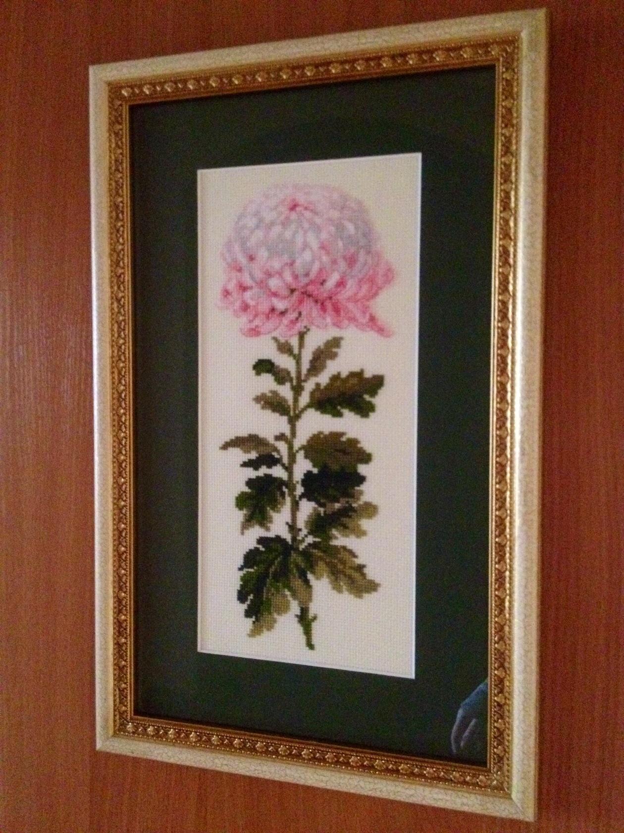 KateBee, оба набора (2 и 3) это - фирма RTO ( 2 - "Розовые хризантемы", 3 - "Хризантемы" ). Канва в наборах Аида 14, тонированная ( легкие акварельные разводы пастельных оттенков, но мне это не понравилось. Заменила на белую Аиду 16 ). Розовая хризантема - это набор "Риолис" - акрил поменяла на мулине. Канву - тоже.
