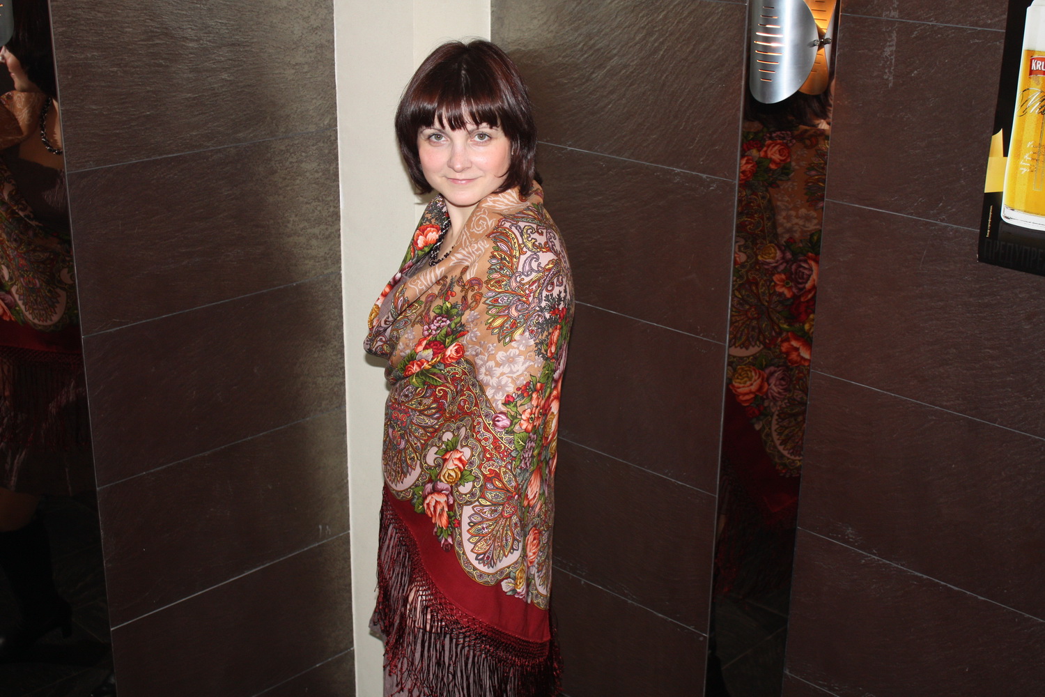 Демонстрируем ношение платков и шалей.
