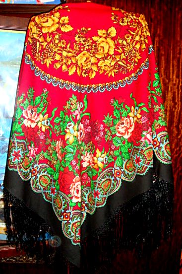 Хочу показать недавно приобретенную шаль Белые розы, колорит которых мне неизвестен, может быть кто-то его знает. На платке нашла штамп Мануфактуры. Добавлю, что платок очень трудно снимать, вспышка искажает цвета, а без вспышки темно и размыто получается. На деле платок лучше, чем на фото.