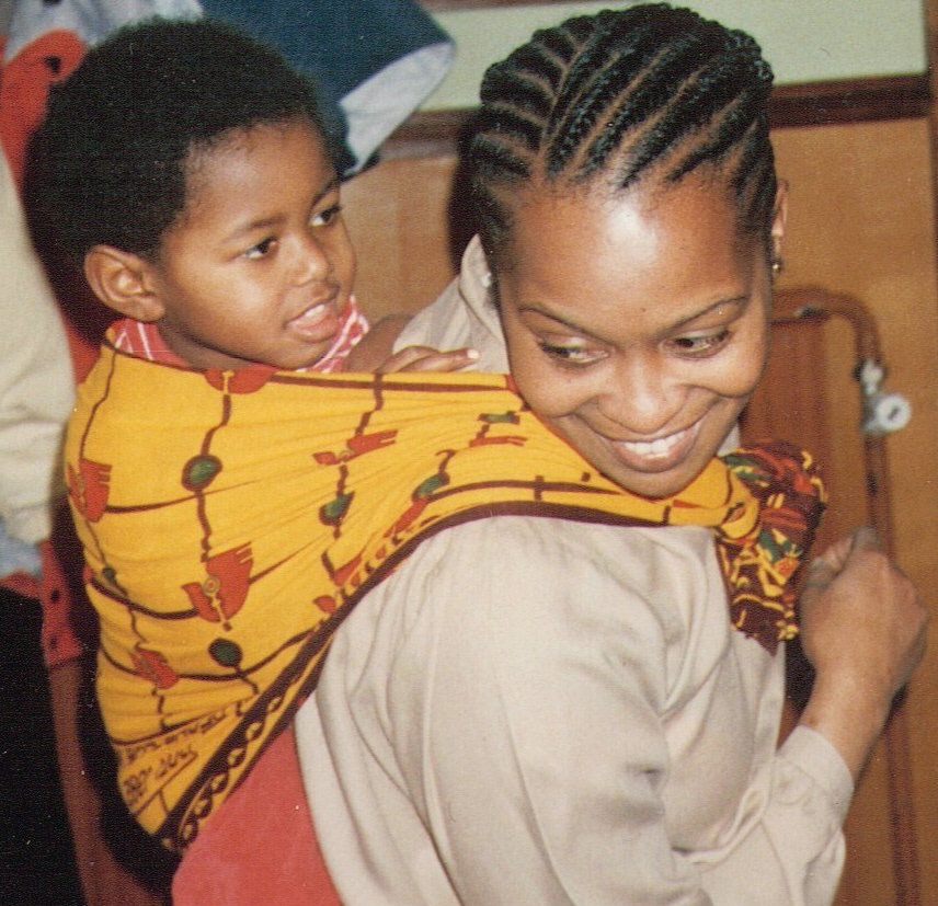 В Западной Африке детей носят в канге (khanga) - это очень легкий тонкий хлопковый платок, размером примерно 1х1,5м.