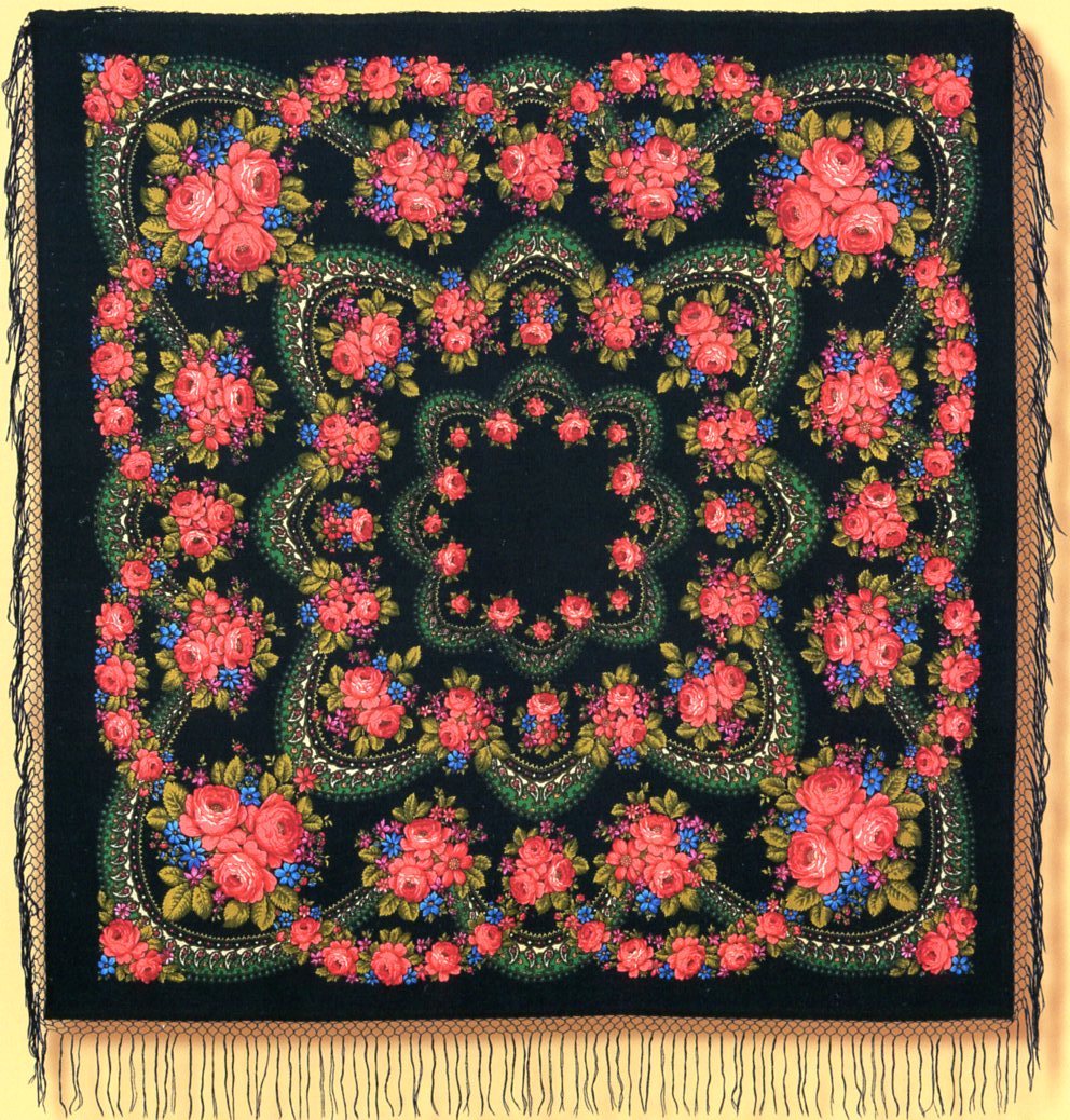Будет называться "Цветочная сказка". Раньше выпускался без названия. Фото с видеокамеры, качество плохое, но Мила говорит, что очень красивый. Классические павловопосадские розы во всей красе. 146х146.
