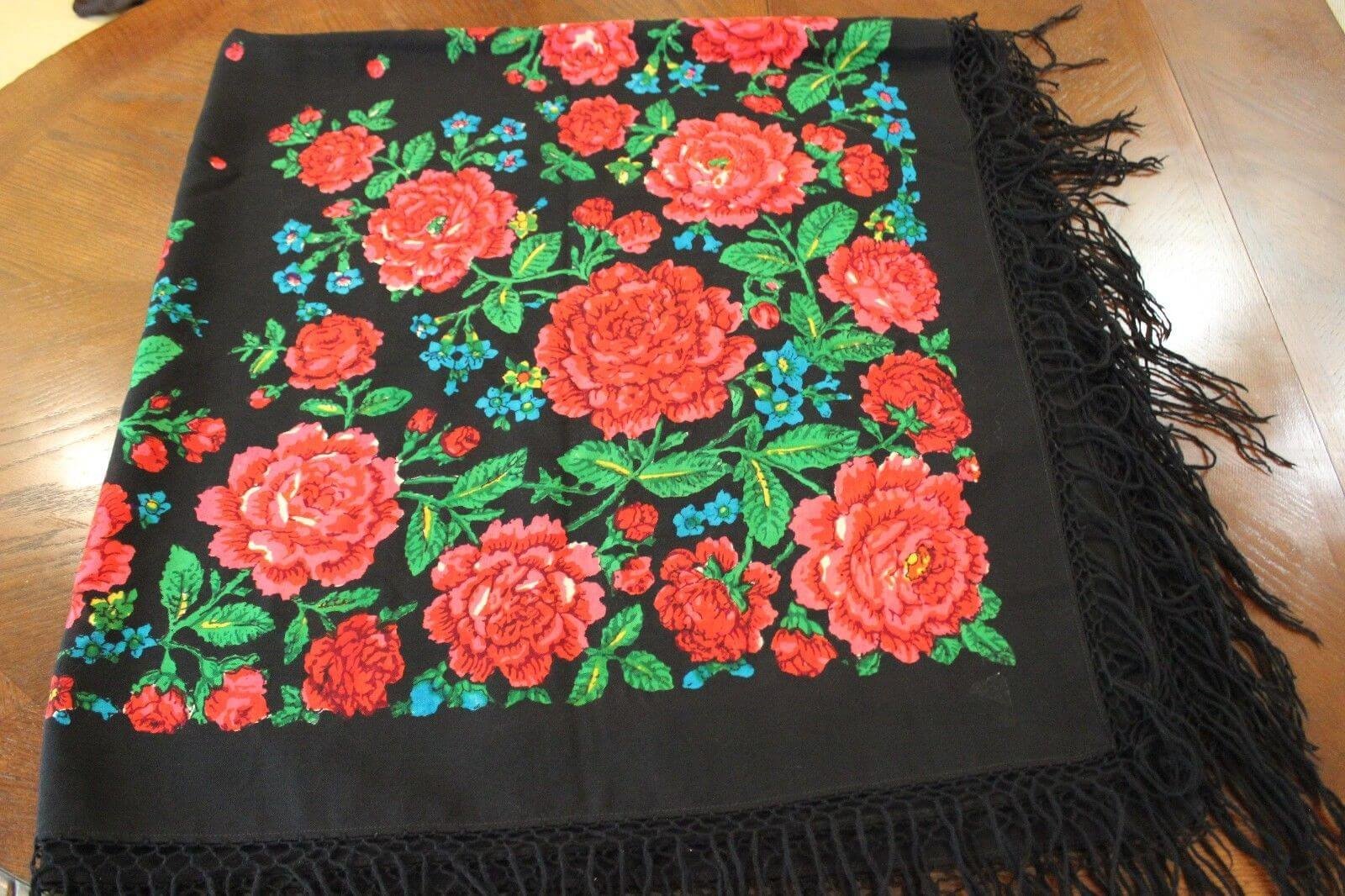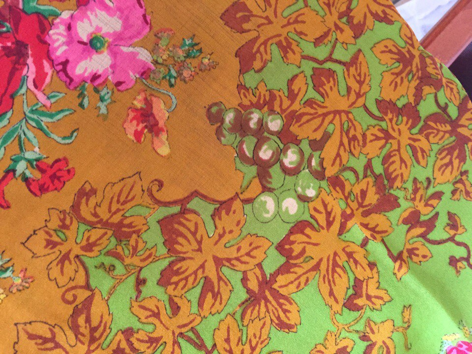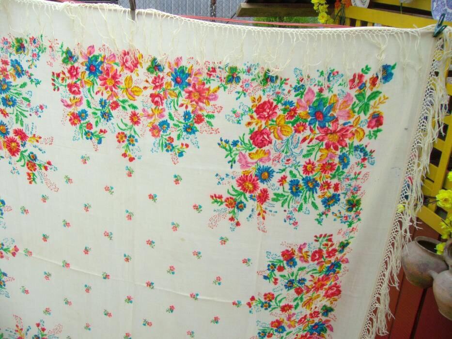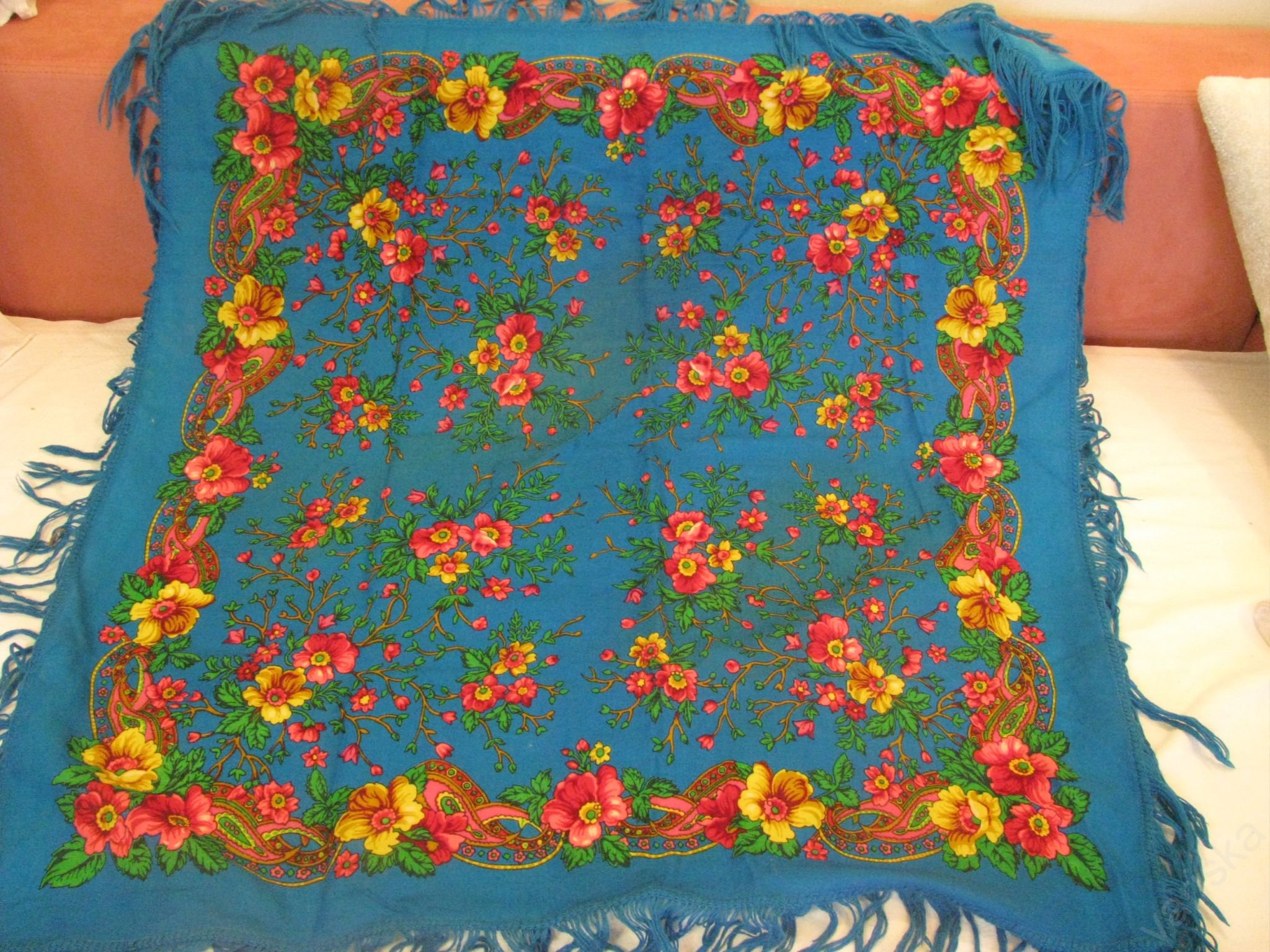 Судя по некоторым особенностям рисунка, думаю, что это павловопосадский платок 50-х годов, ручная набойка. А стиль рисунка лично мне очень напоминает руку Л.С. Шаховской.