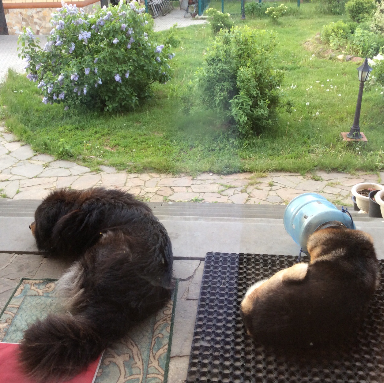 Они когда попами друг г другу это означает доверяют.а ближе -жарко. Особенно собаке с густой длинной шерстью. Все там нормально, вместе веселее,две собаки вообще супер.
