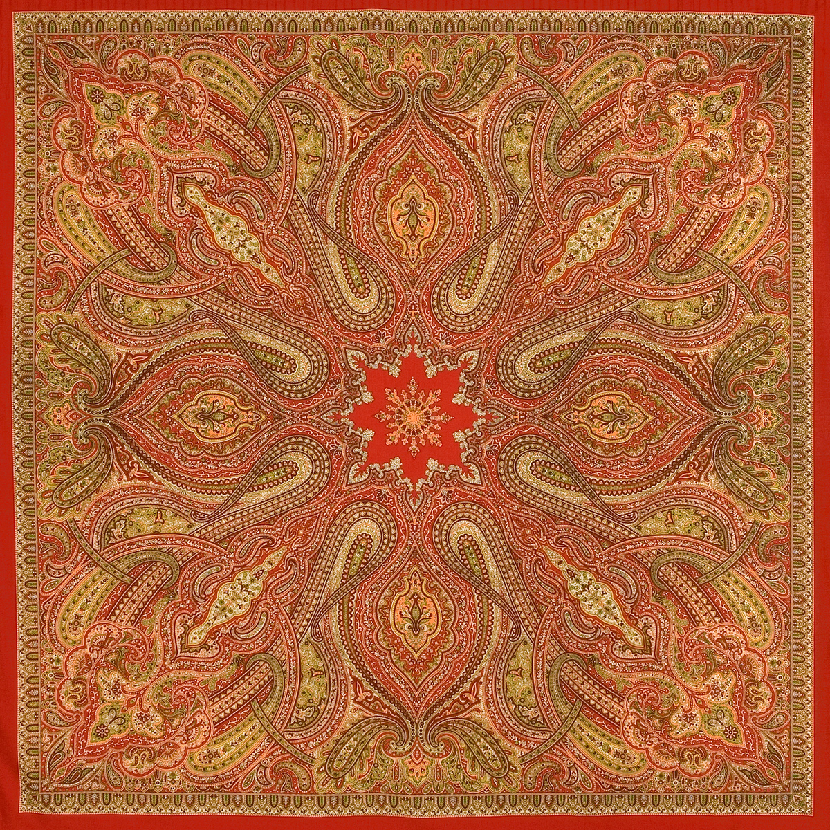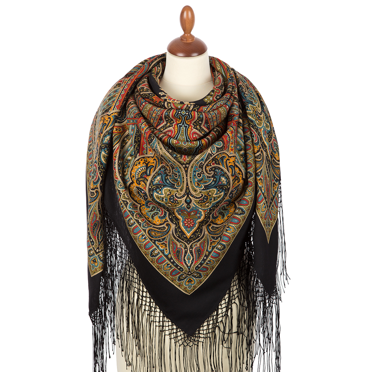 Таинственный вечер-14 выпускался на уплотненной шерстяной ткани в размере 150 с простой вискозной бахромой, сроки осень 2018 года. Артикул 1СН150-5-ПН - шаль(?)