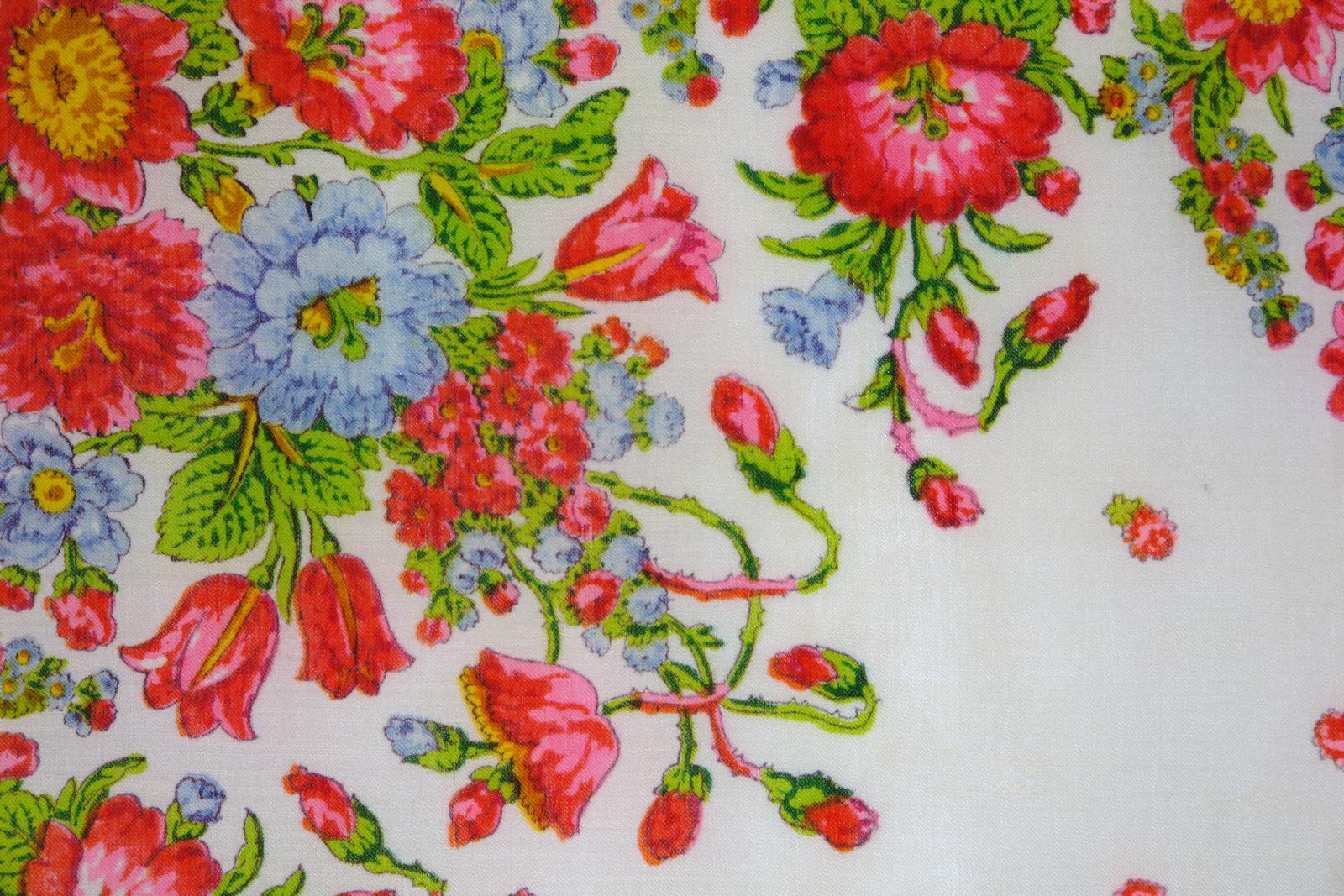 Шаль изначально печаталась на грунте цвета беж, который отличается от кремового оттенком.