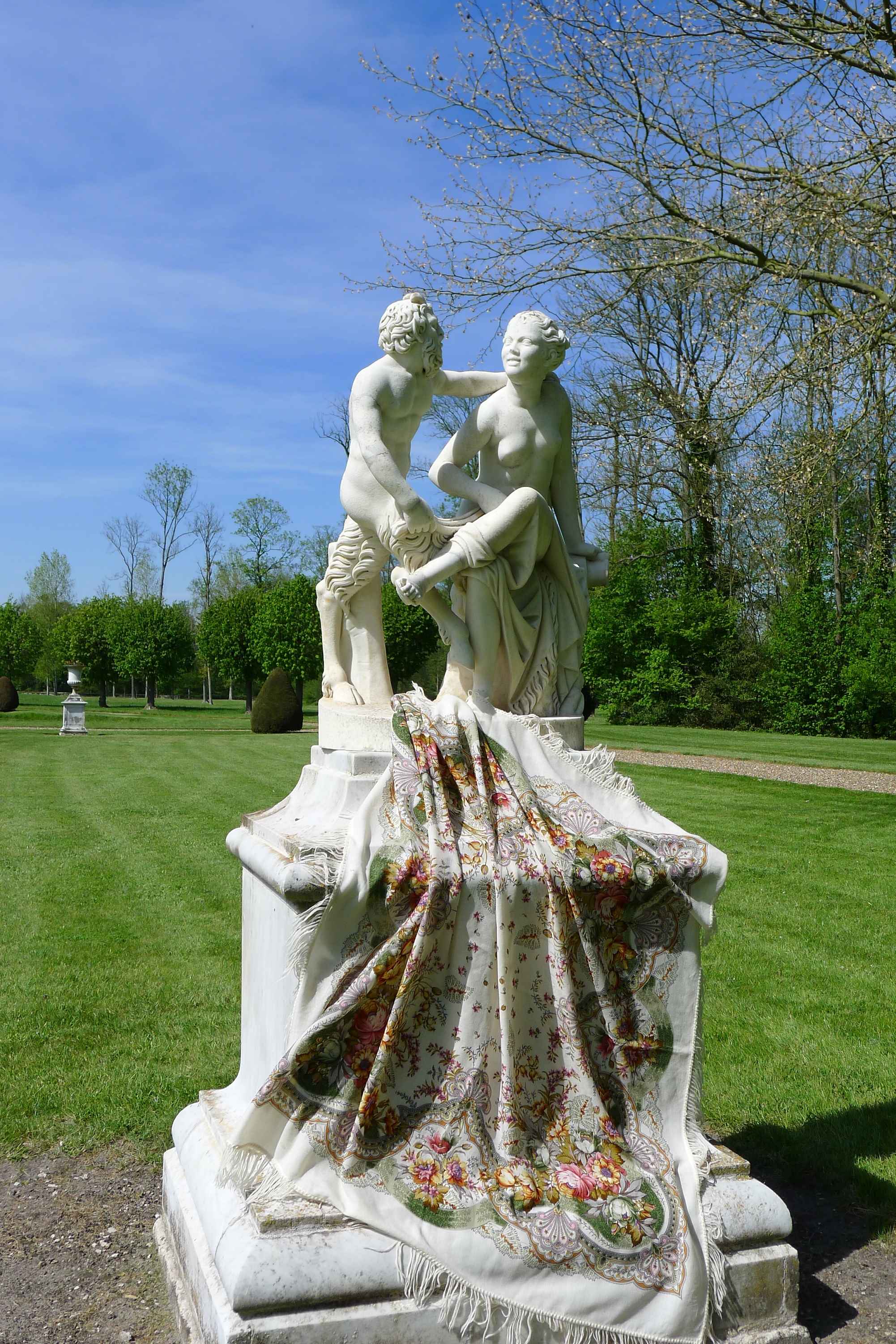 Вокруг замка-музея регулярный парк, с подстриженными деревьями, скульптурами и прудами. В прудах сначала плавали гуси и утки, но их разогнал злобный лебедь и плавал потом в одиночестве. Вода в пруду прозрачная, но темная, как в наших лесных прудах – наверное, торфяная почва.