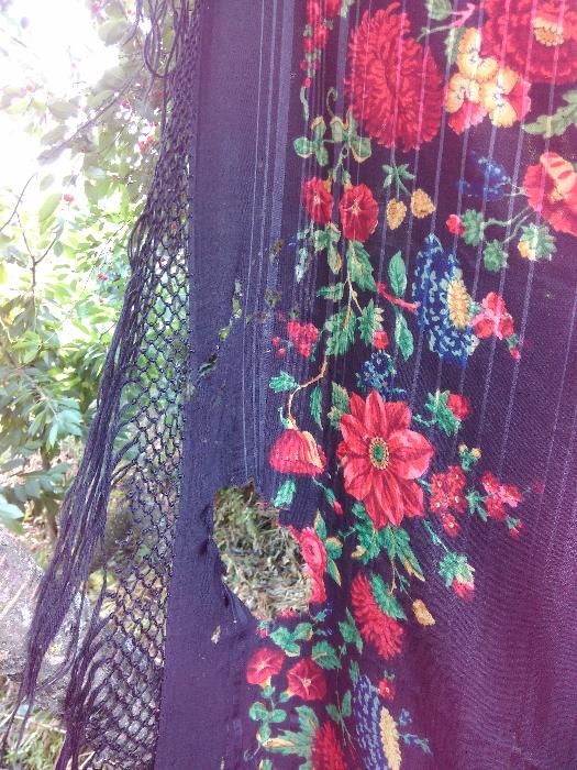 Дополнительная информация от будущей хозяйки платка - платку в районе ста лет, он из города Солигалич, Костромской области, принадлежал какой-то богатой даме.