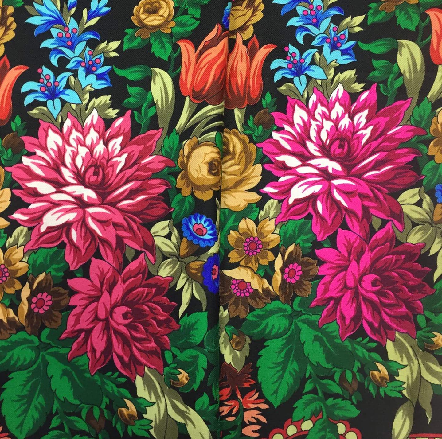 не вижу никакой разницы в яркости на примере этих двух платков, но вижу разницу в тоне на георгинах и розах (которые розовые): на платке слева белый цвет желтоватый, а розовый - с лососиной, а на платке справа белый цвет снежно-белый, а розовый - фуксиевый; все остальные цвета по тонам одинаковые, имхо
