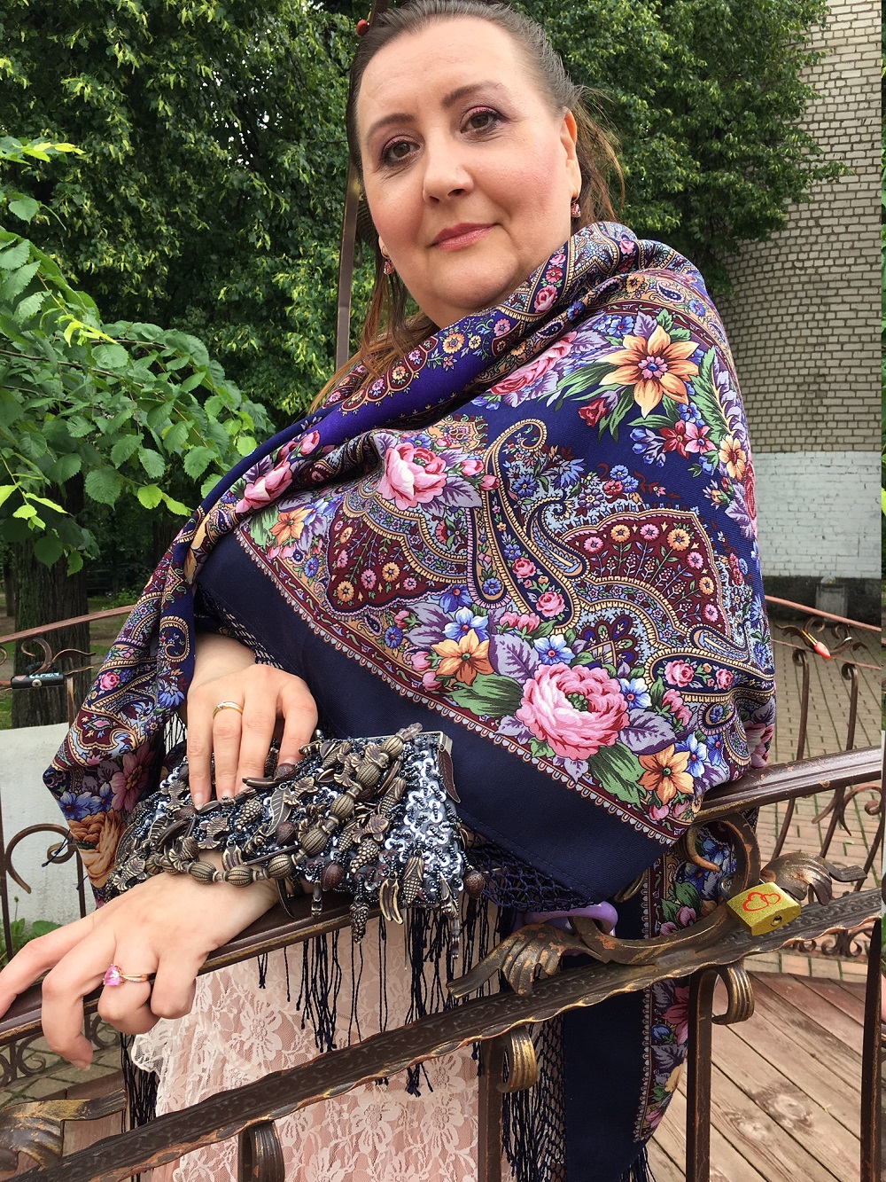 Светана, отличный выбор! Мне тоже больше всего с Княжеским понравилось. Эффектное сочетание двух сложных густо-голубых оттенков на платье и на шали. Они смотрятся специальным комплектом, как созданы друг для друга. И всё это, конечно, очень идёт.