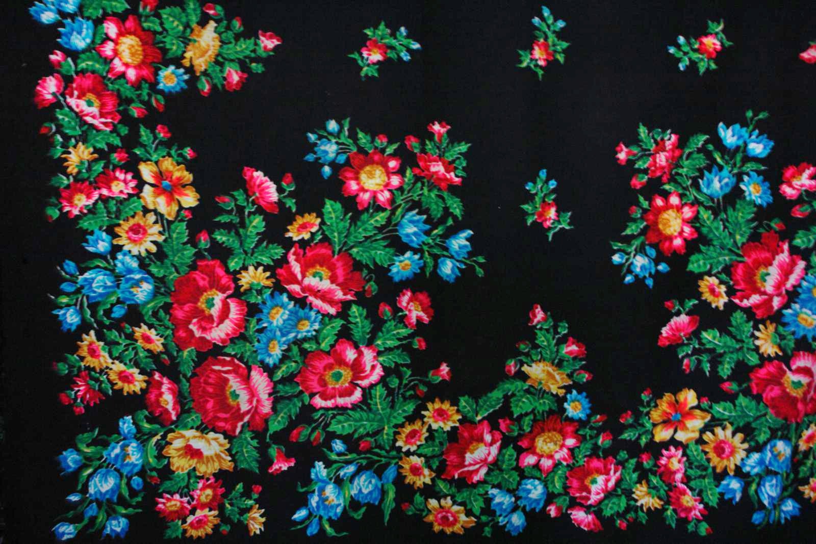 Шаль старинная (старопавловская) с декоративной каймой с элементами в форме листьев, выполненных способом (методом?) вытравки.